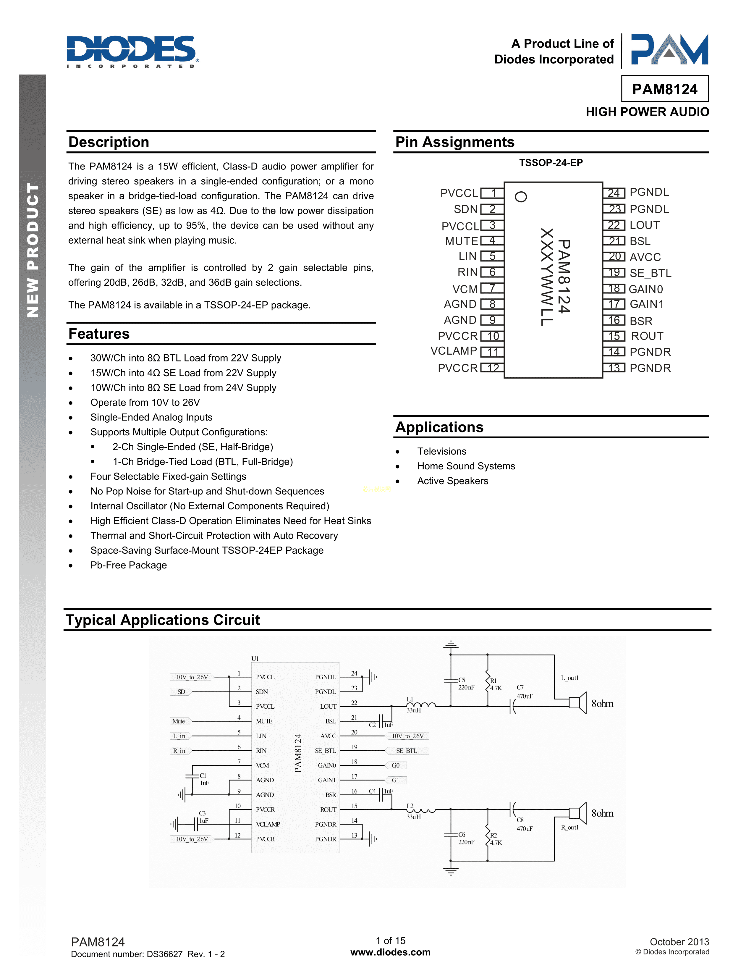 PAM8124RHR数据手册TSSOP-24EP封装DIODES(美台)PDF规格书,中英文下载
