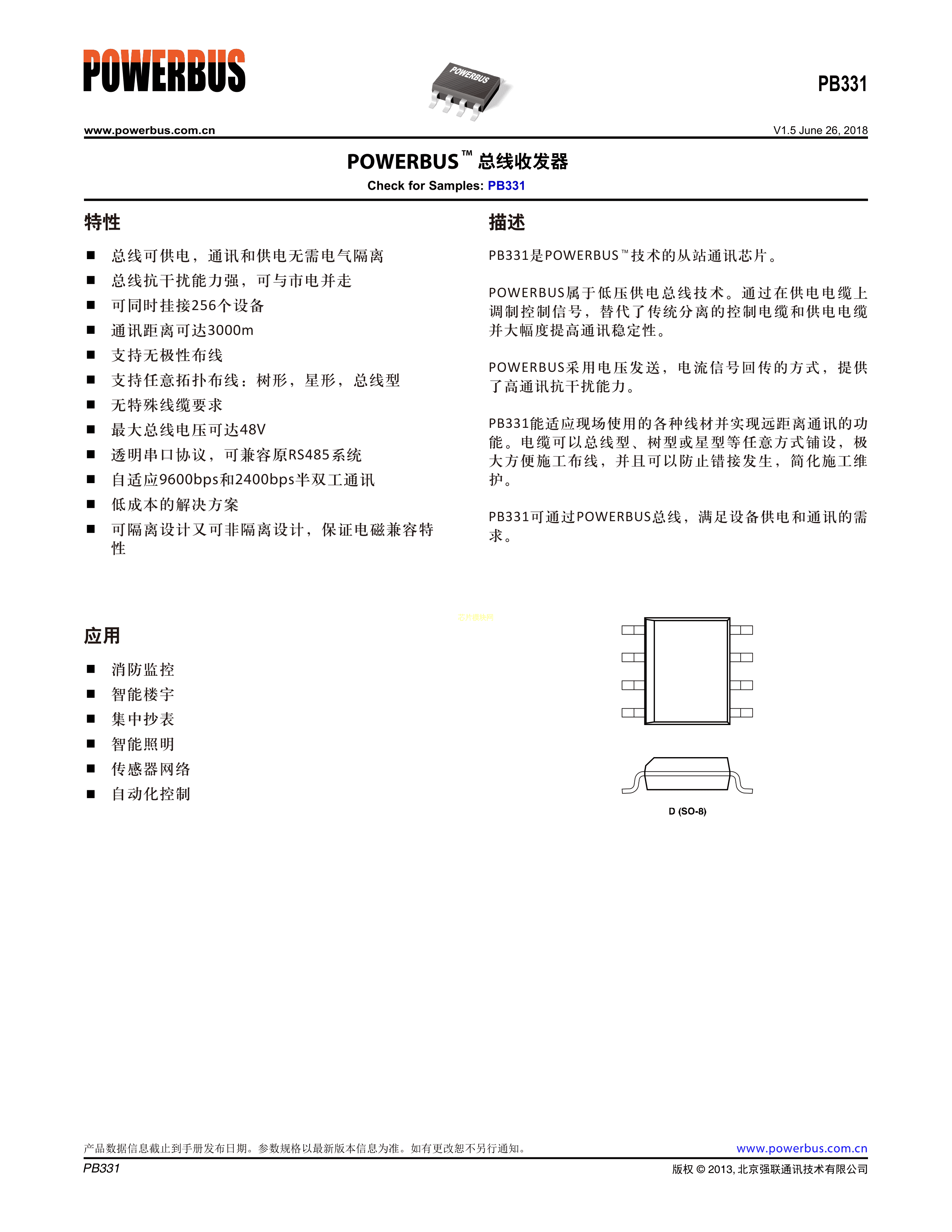 PB331数据手册SO-8封装POWERBUS(强联通讯)PDF规格书,中英文下载