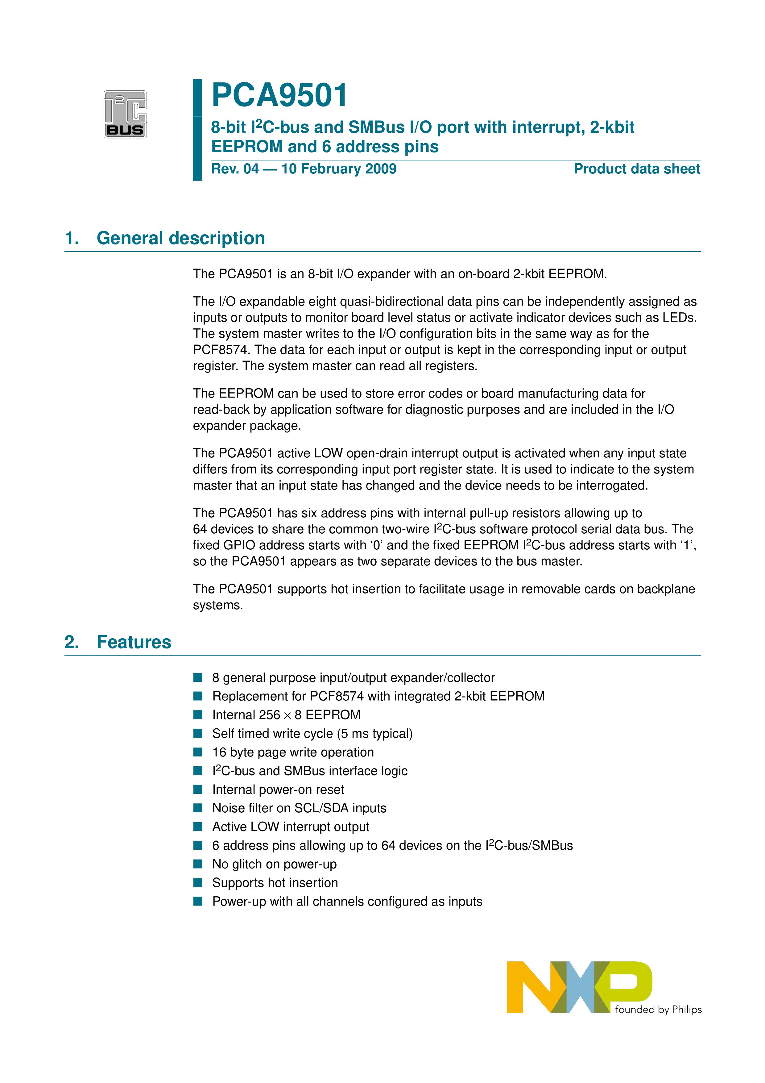 PCA9501BS118数据手册HVQFN-20(5x5)封装NXP(恩智浦)PDF规格书,中英文下