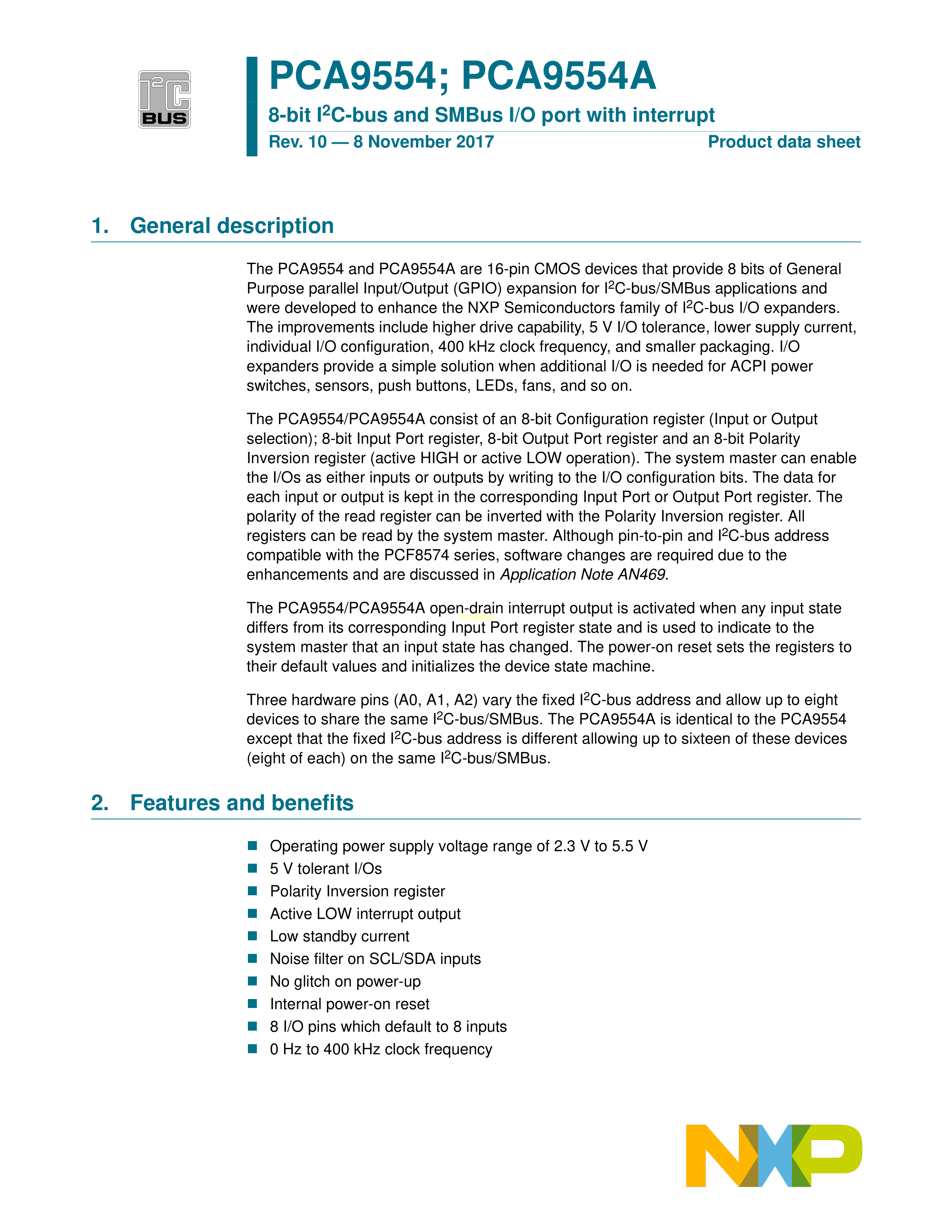 PCA9554AD118数据手册SO-16封装NXP(恩智浦)PDF规格书,中英文下载