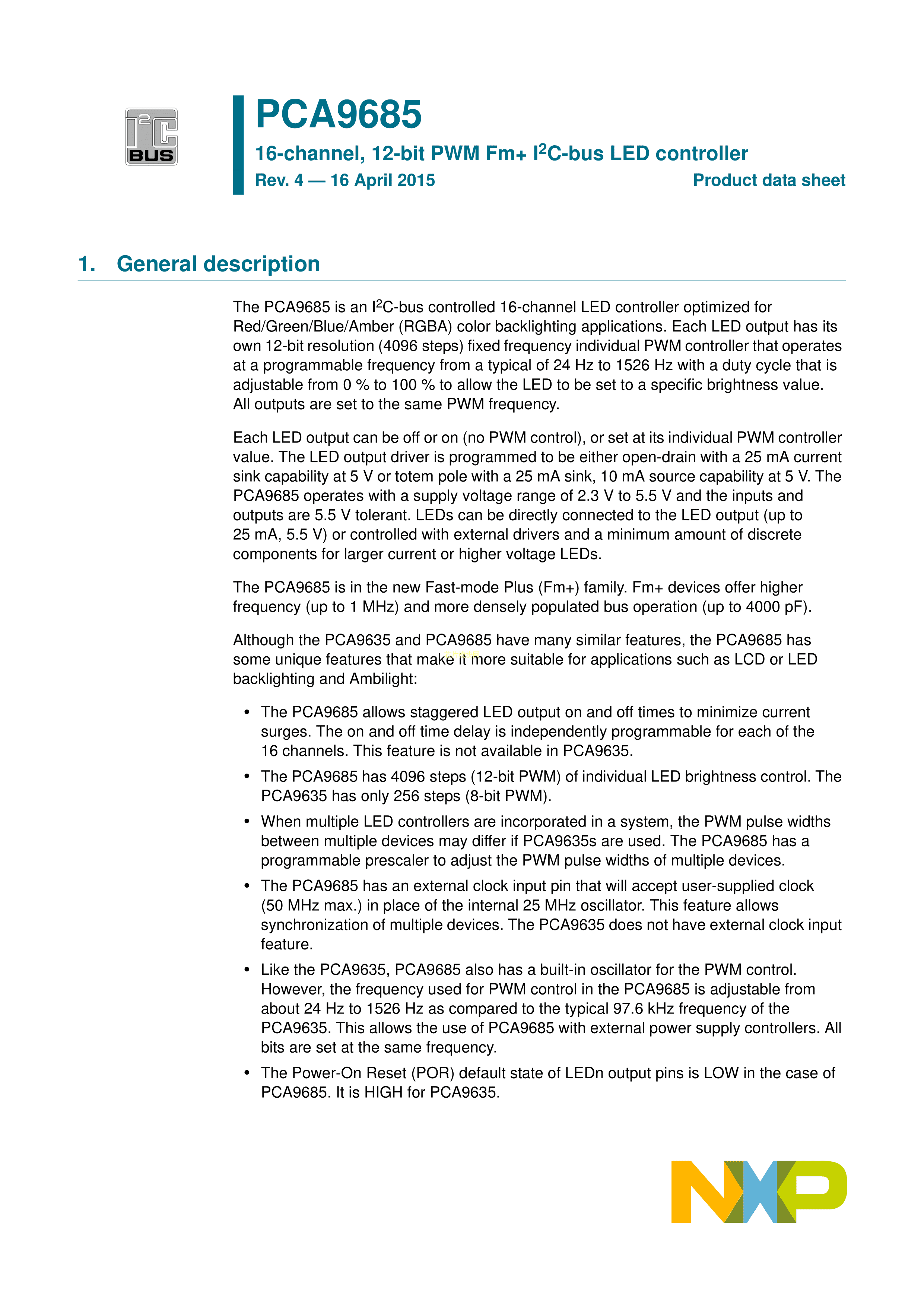 PCA9685PW-Q900118数据手册TSSOP-28封装NXP(恩智浦)PDF规格书,中英文下