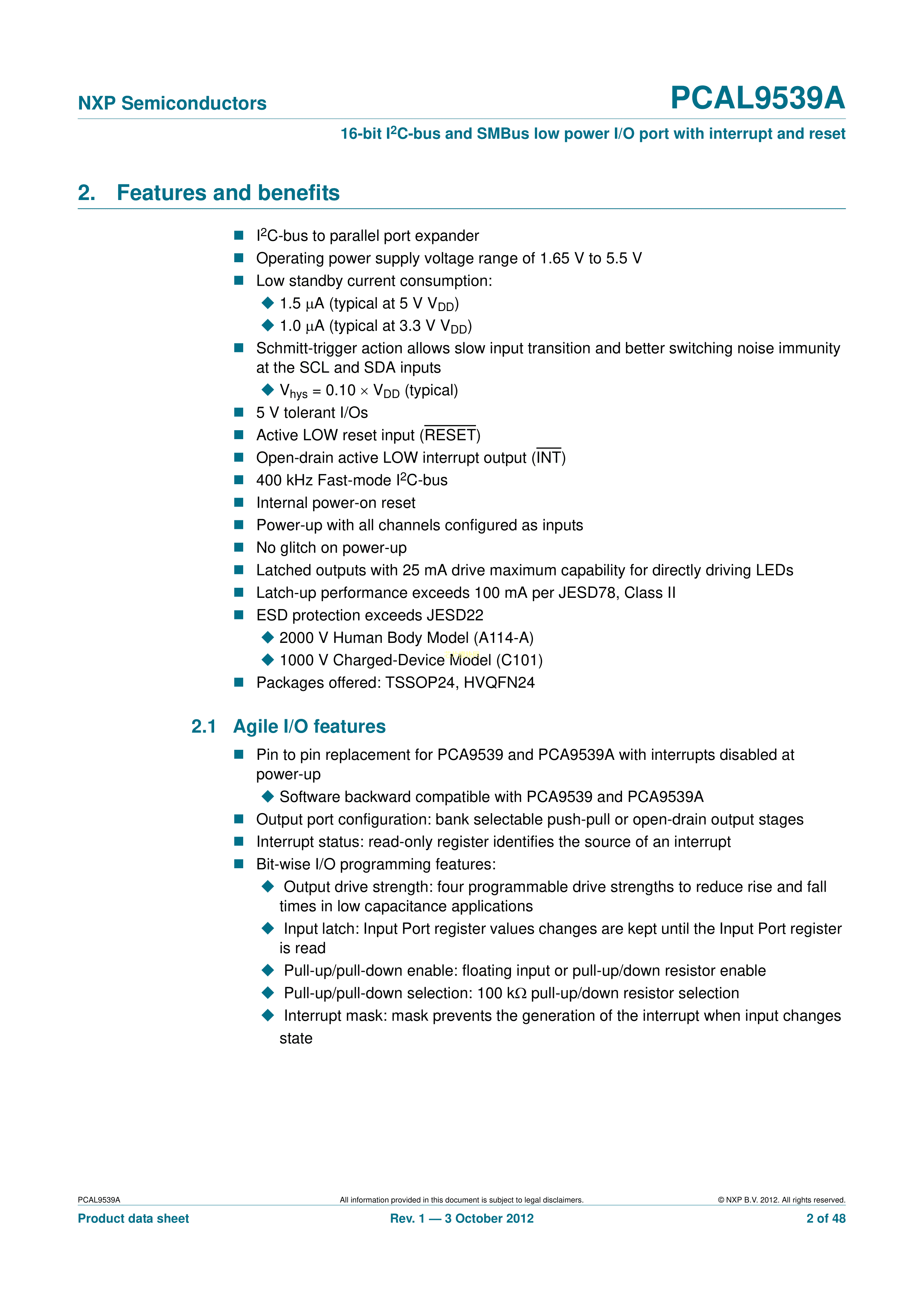 PCAL9539AHF128数据手册HWQFN-24(4x4)封装NXP(恩智浦)PDF规格书,中英