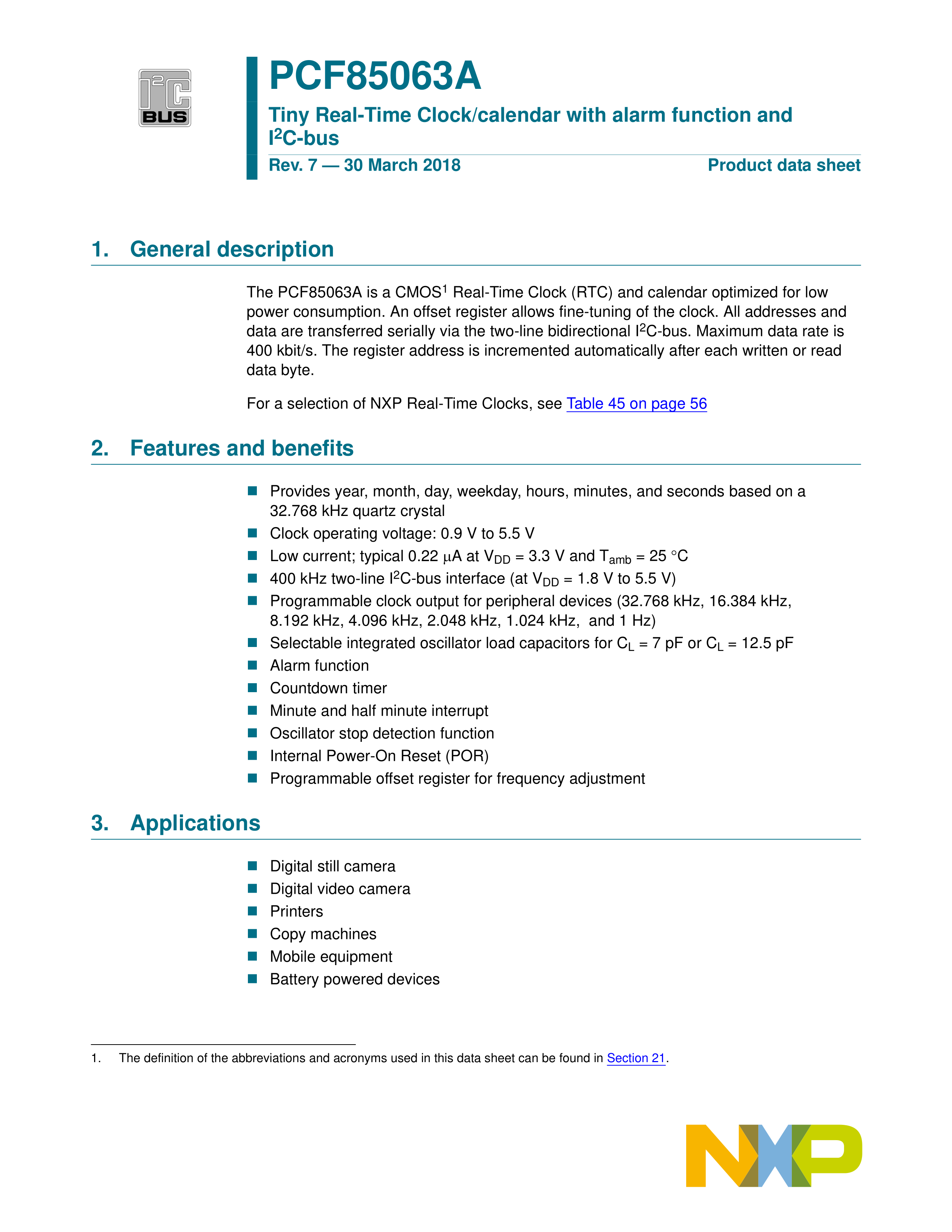 PCF85063ATT-AJ数据手册TSSOP-8封装NXP(恩智浦)PDF规格书,中英文下载