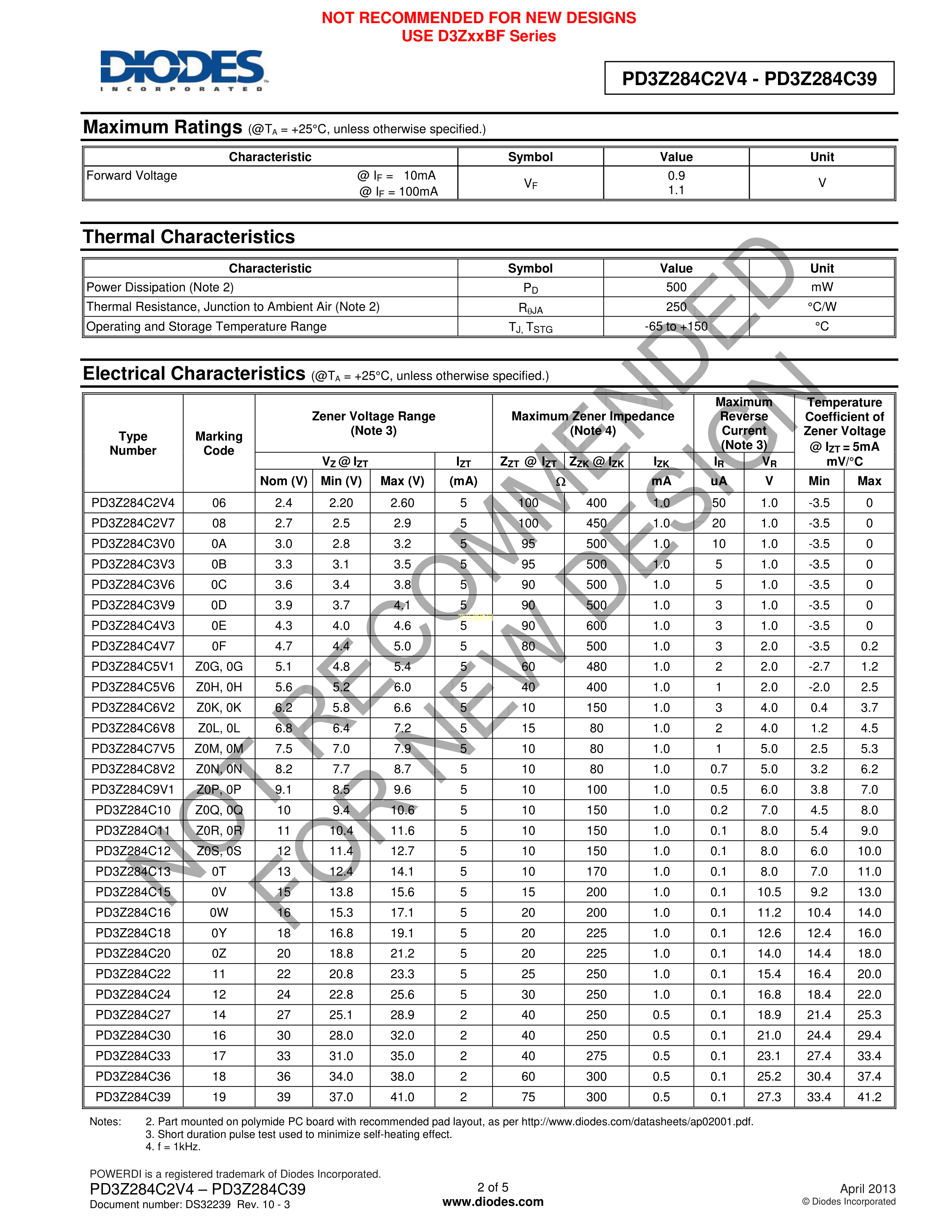PD3Z284C27-7数据手册PowerDI323封装DIODES(美台)PDF规格书,中英文下载