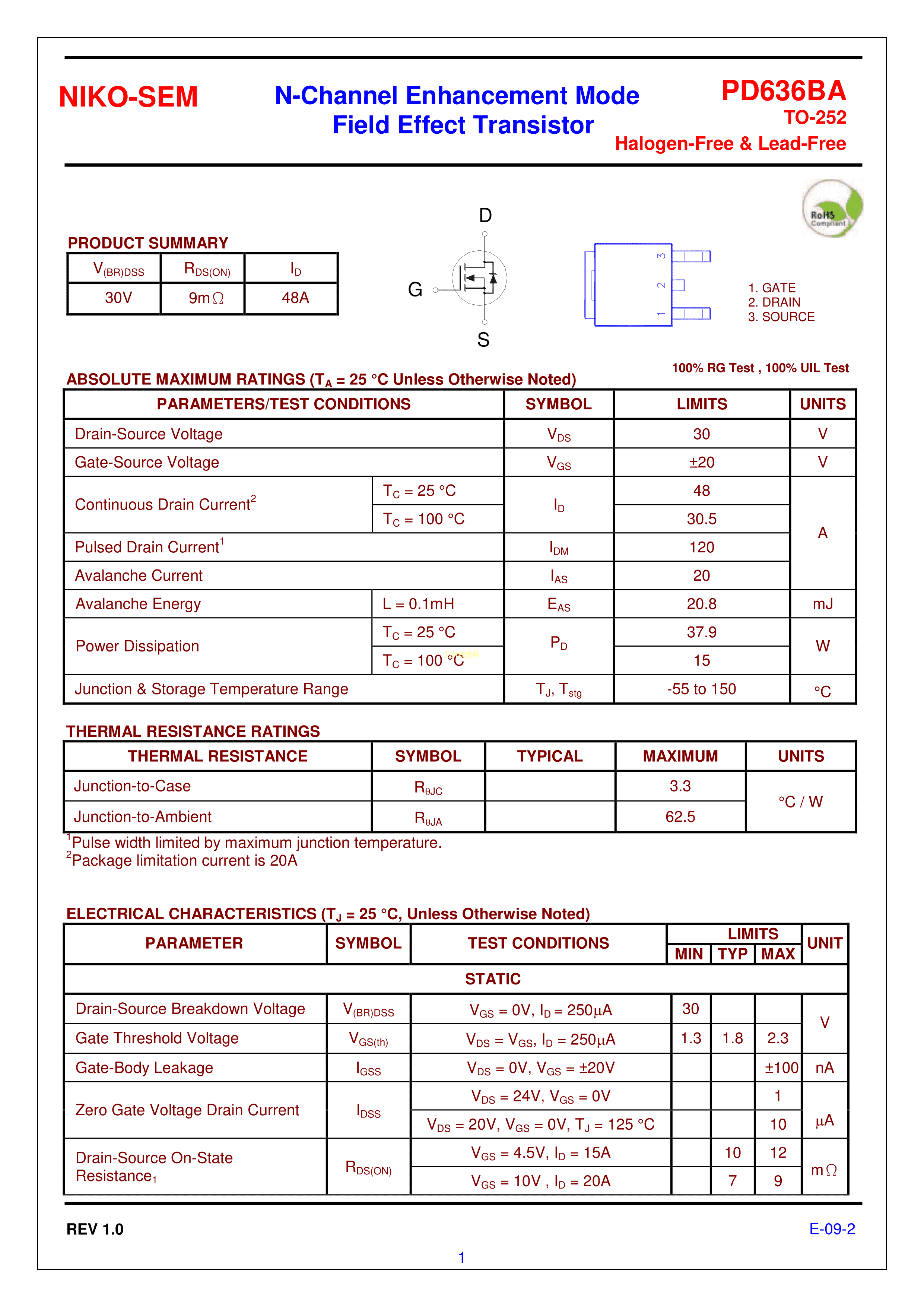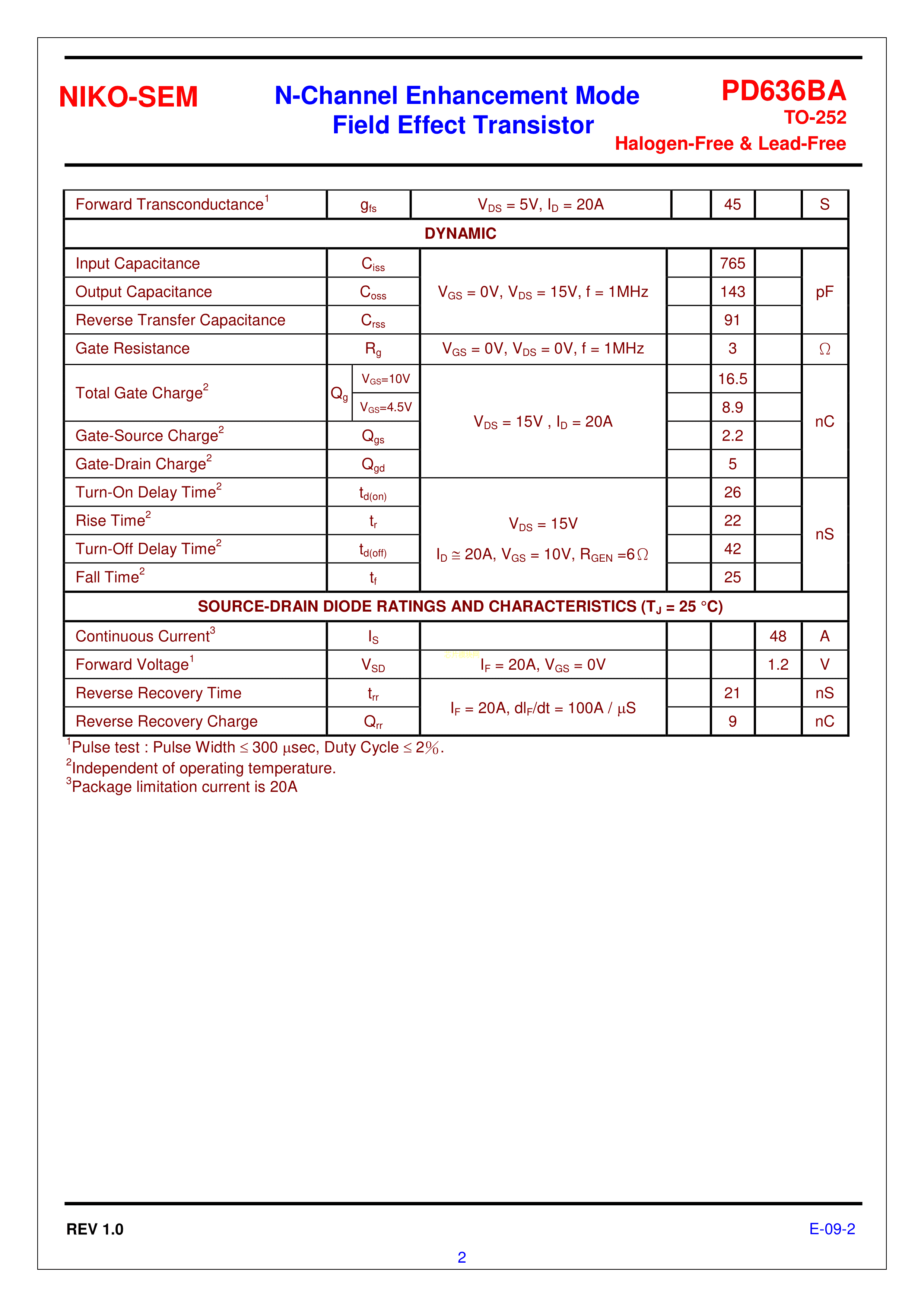 PD636BA数据手册TO-252封装NIKO-SEM(尼克森)PDF规格书,中英文下载