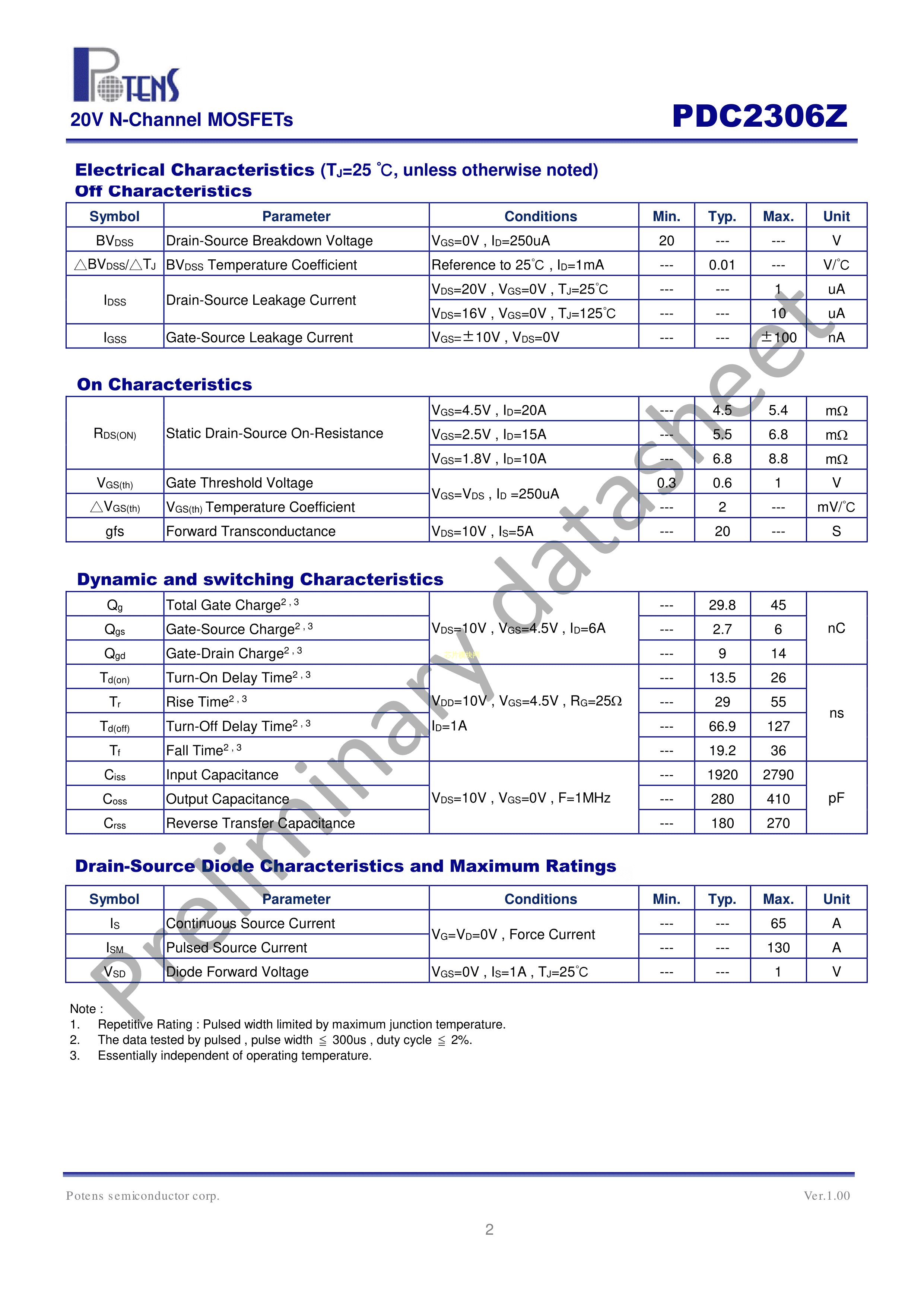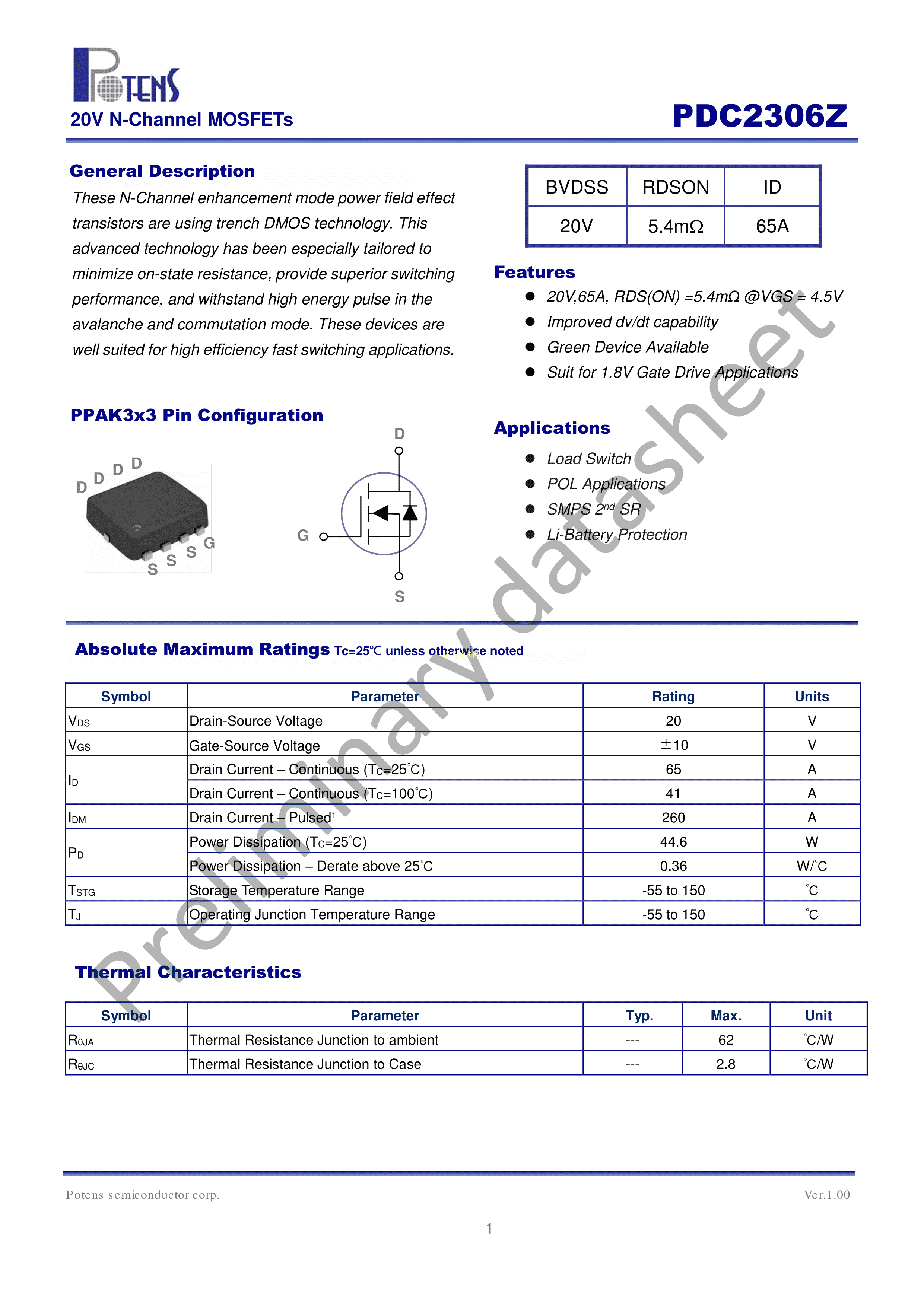 PDC2306Z数据手册PPAK3X3封装Potens(博盛半导体)PDF规格书,中英文下载