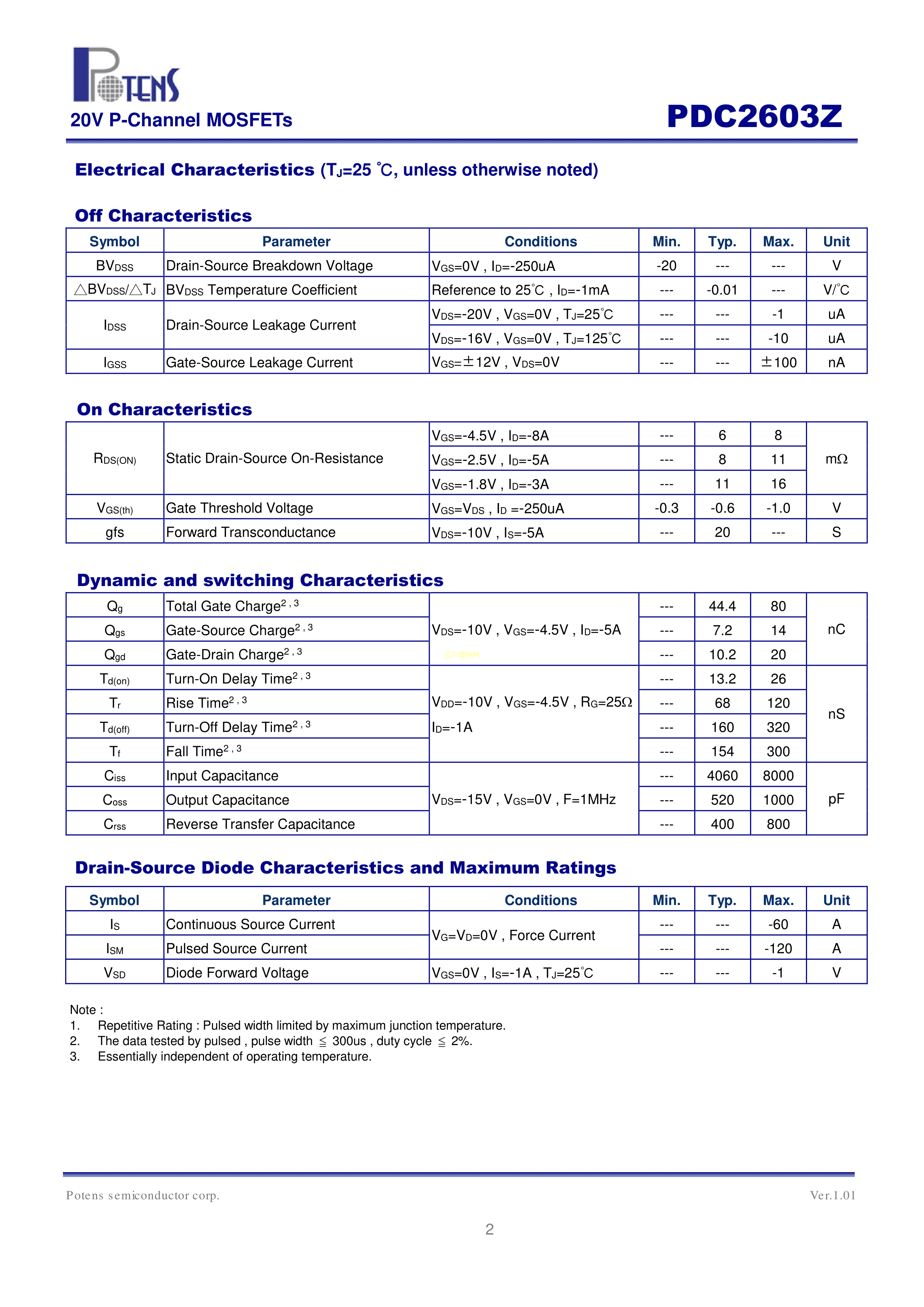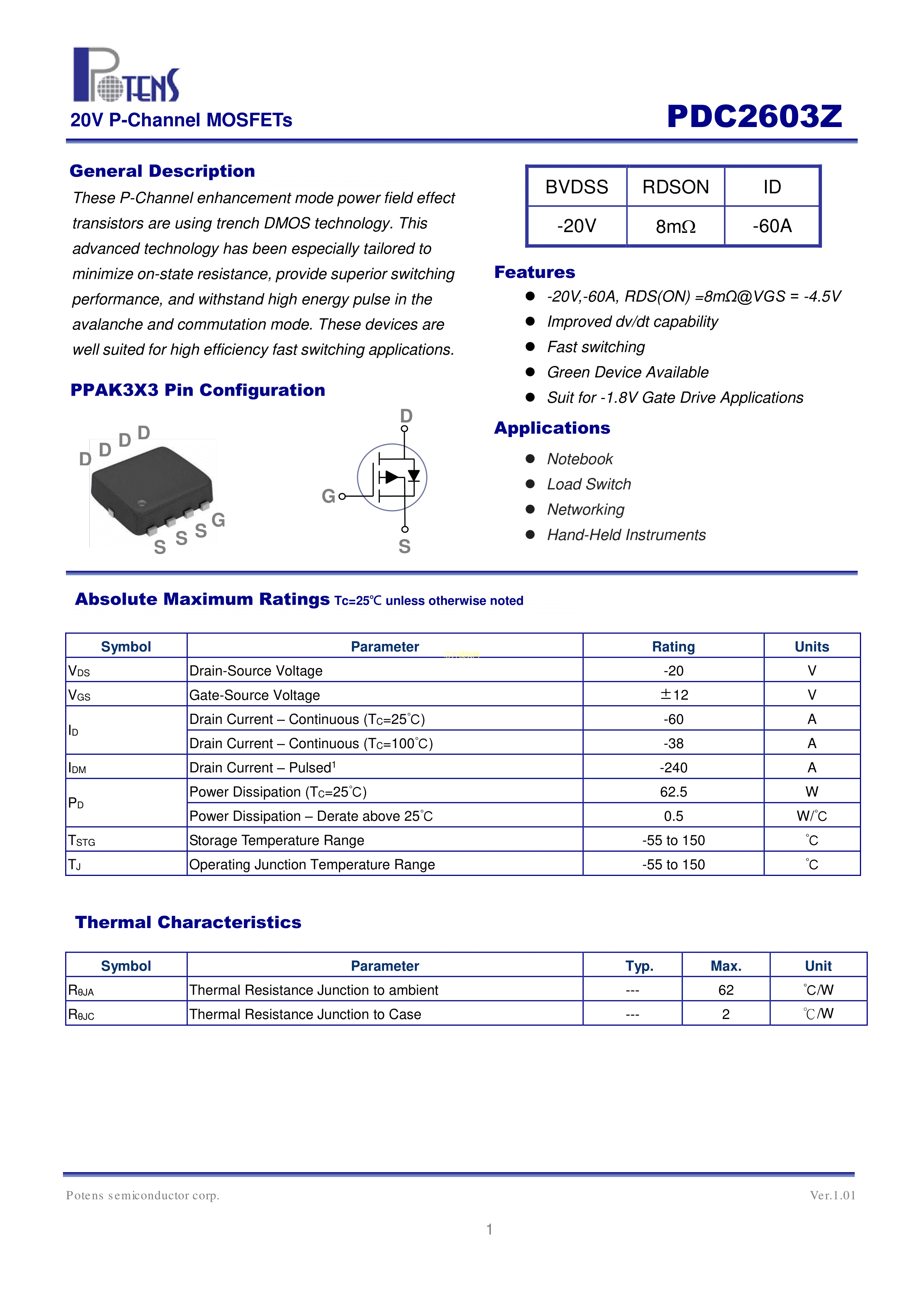 PDC2603Z数据手册PPAK3x3封装Potens(博盛半导体)PDF规格书,中英文下载