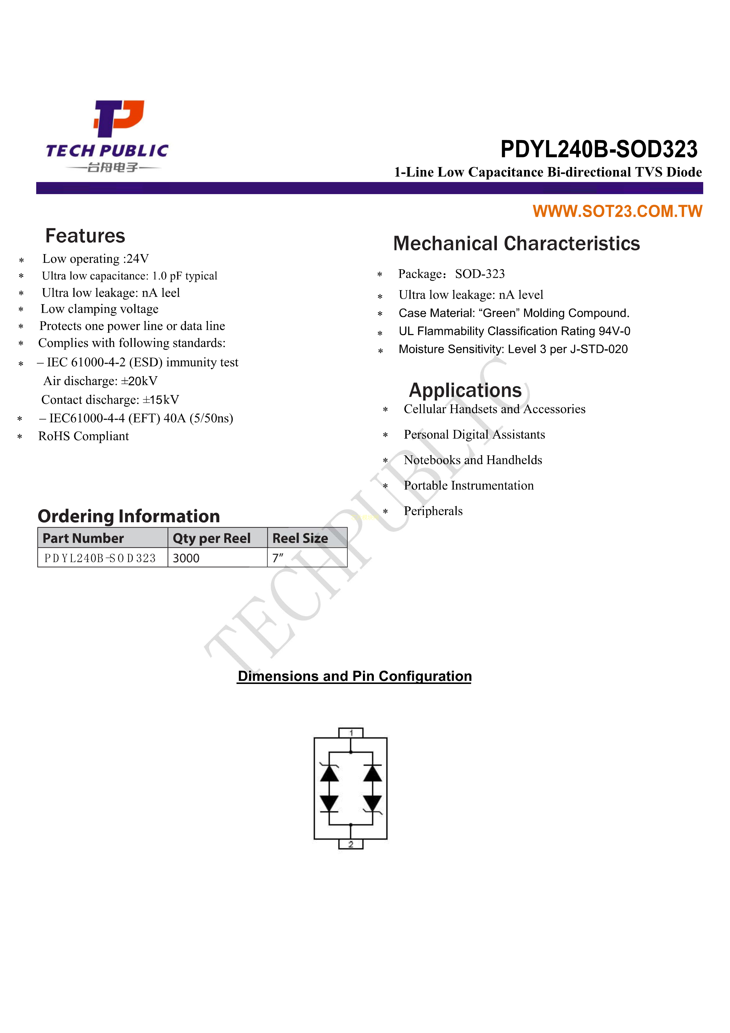 PDYL240B-SOD323数据手册SOD-323封装TECH PUBLIC(台舟)PDF规格书,