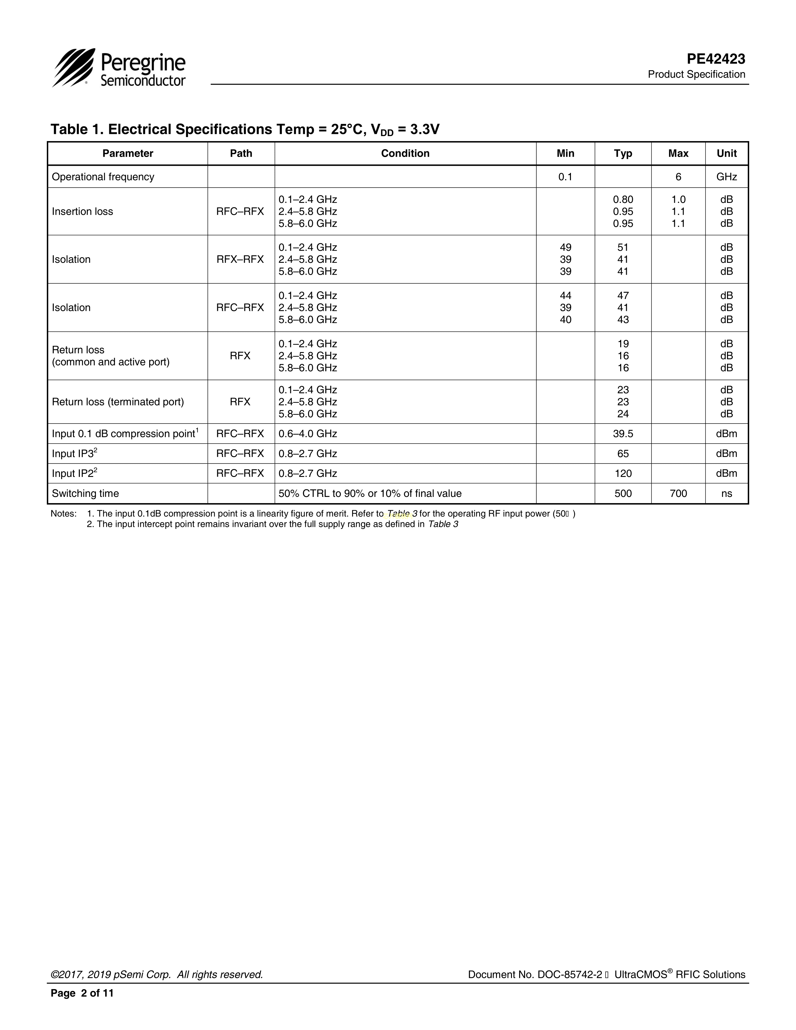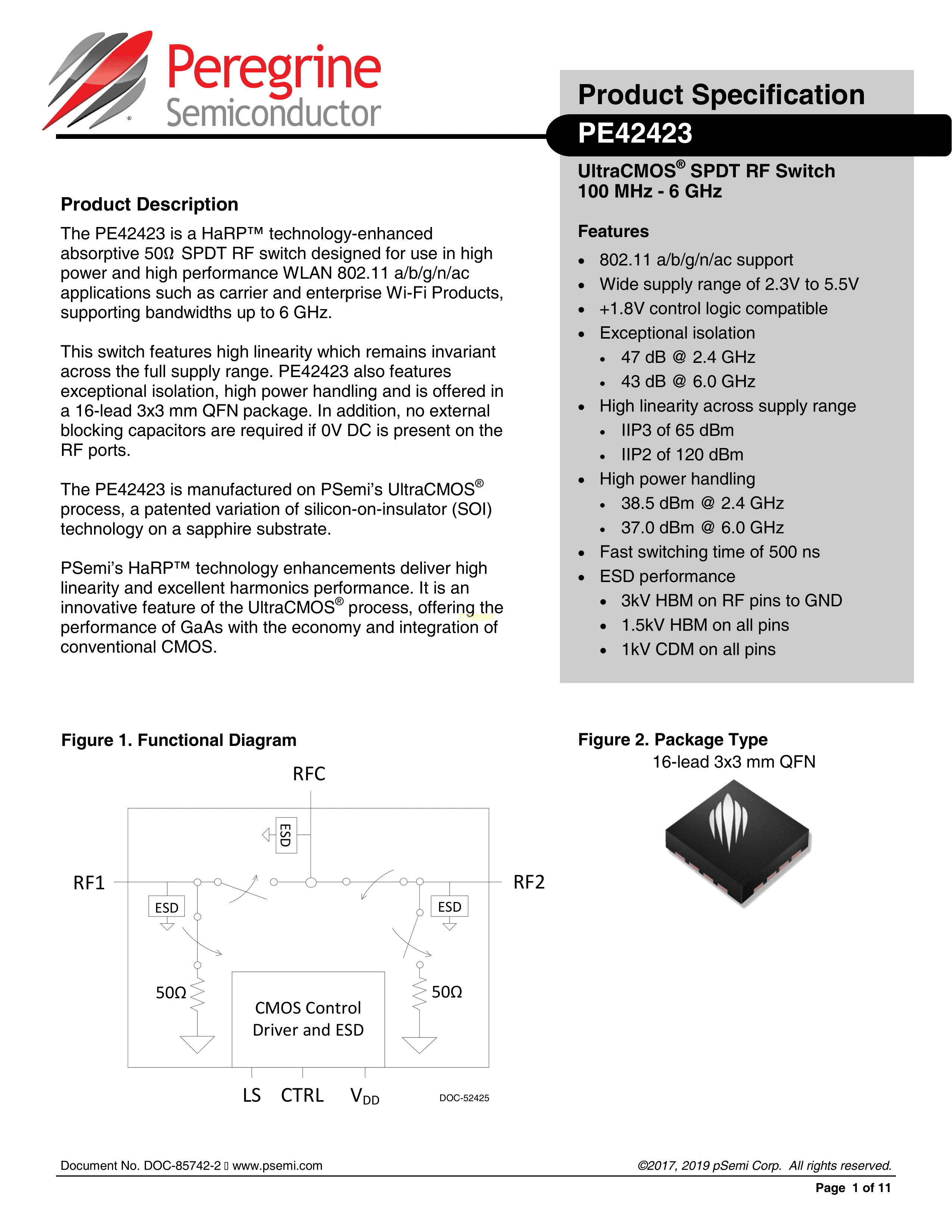 PE42423B-Z数据手册QFN-16(3x3)封装PSemiPDF规格书,中英文下载