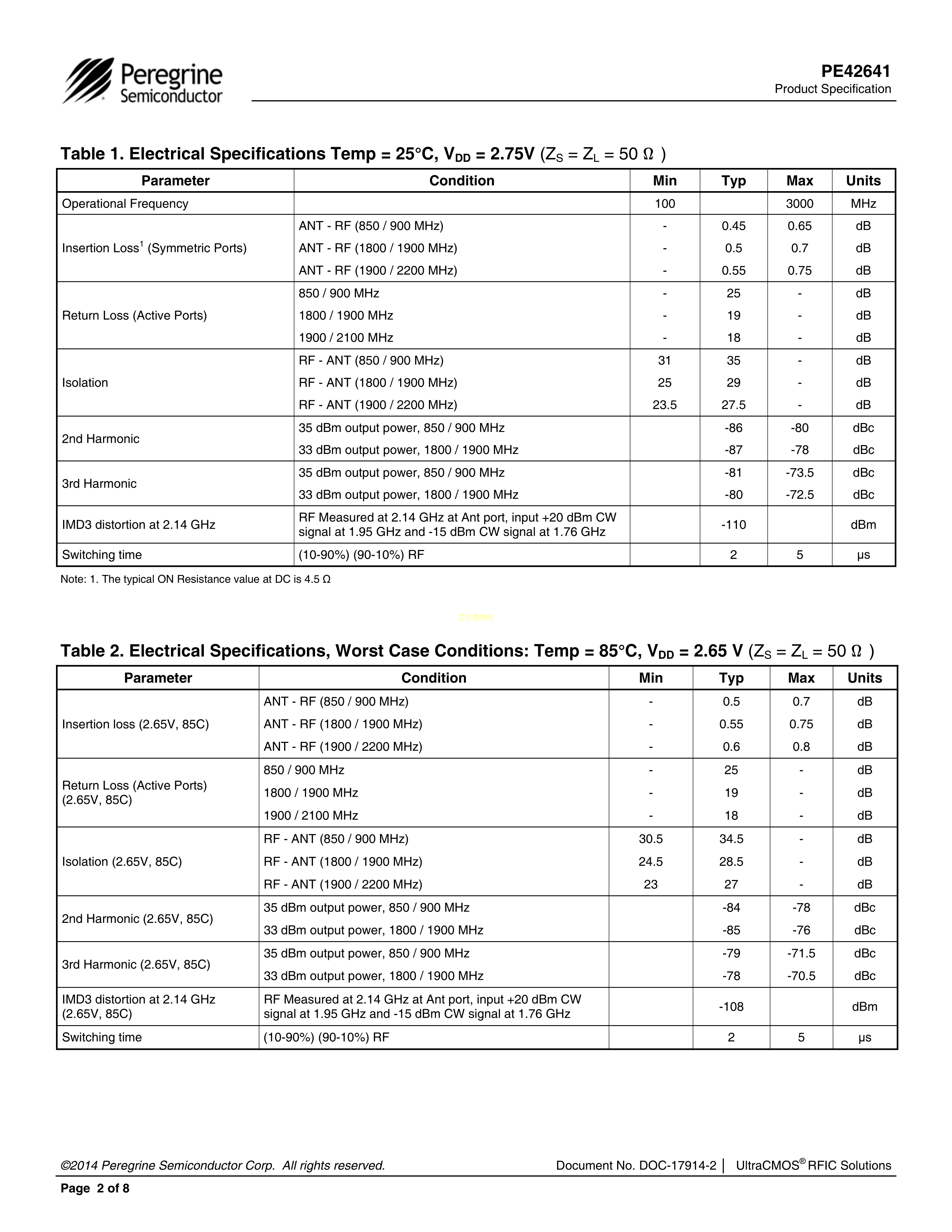 PE42641MLBD-Z数据手册QFN-16(3x3)封装PSemiPDF规格书,中英文下载