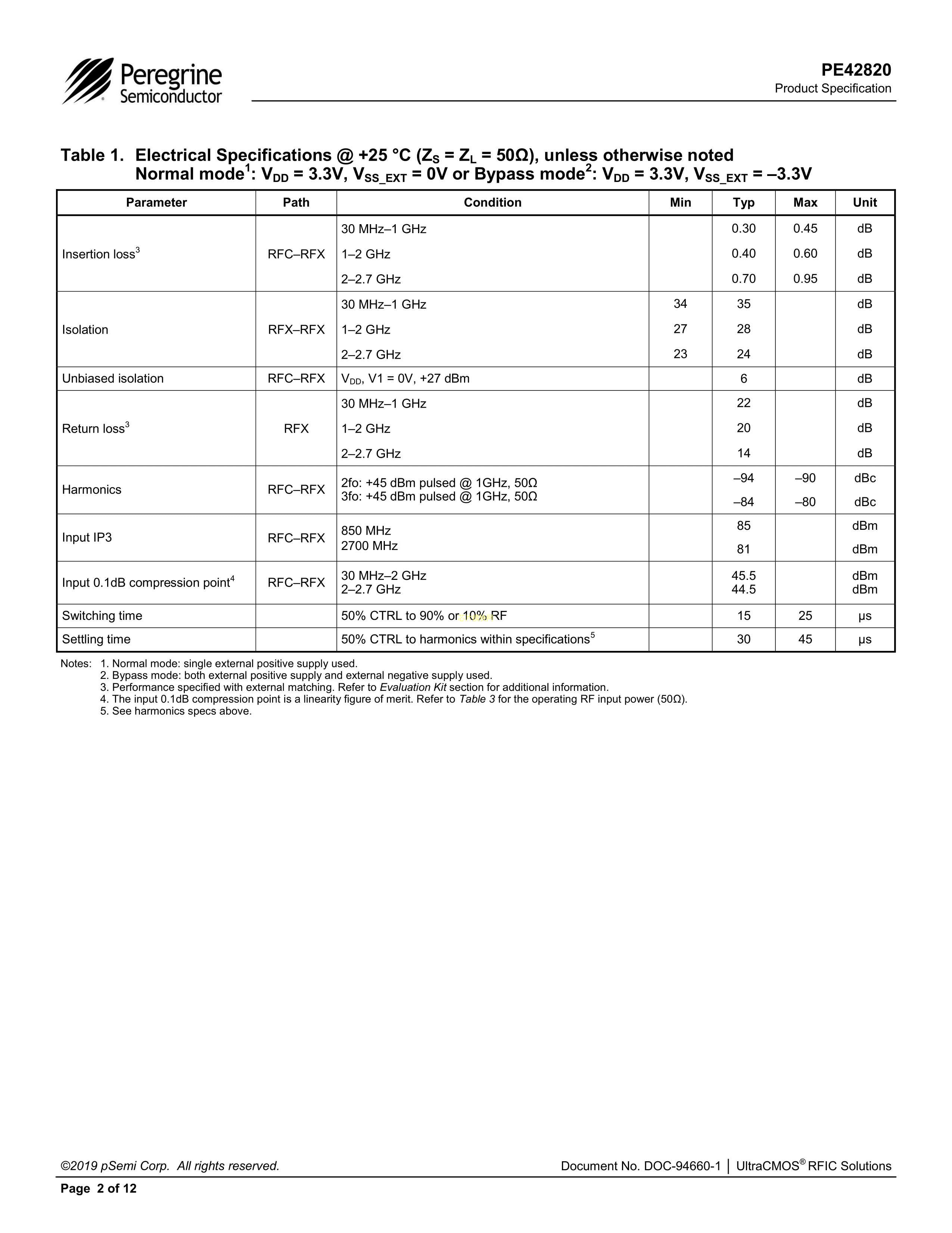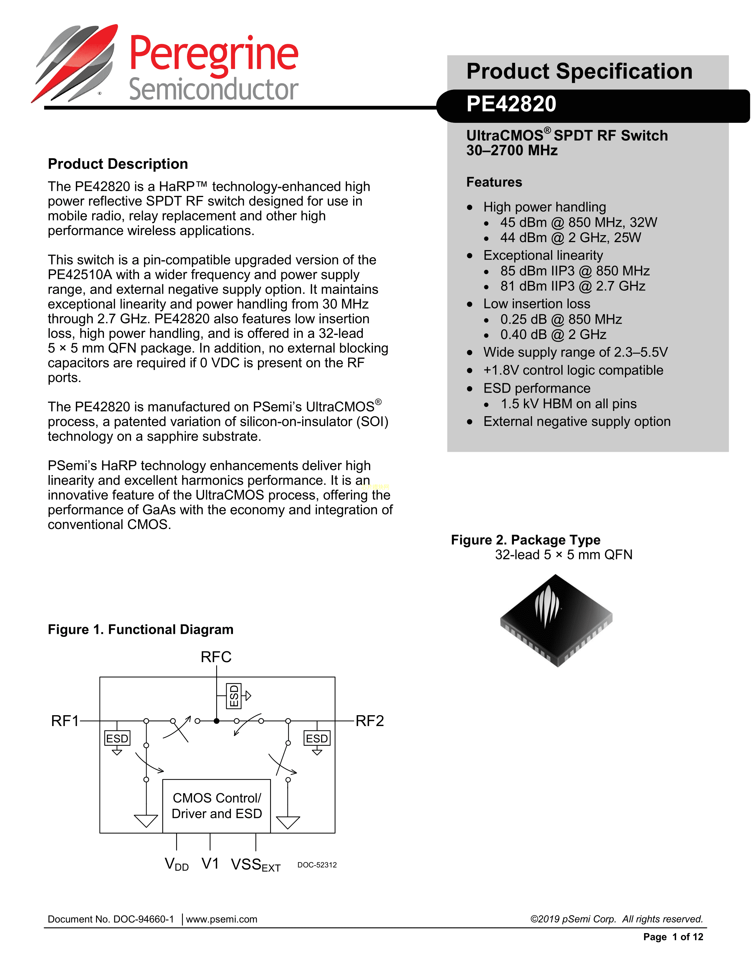 PE42820B-X数据手册QFN-32(5x5)封装PSemiPDF规格书,中英文下载
