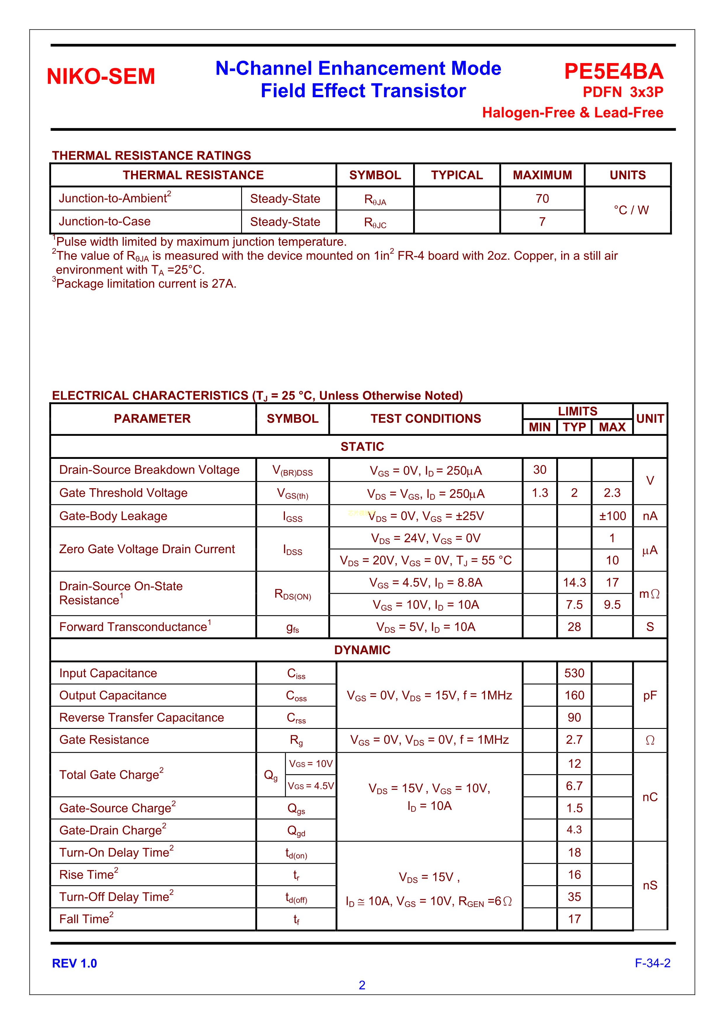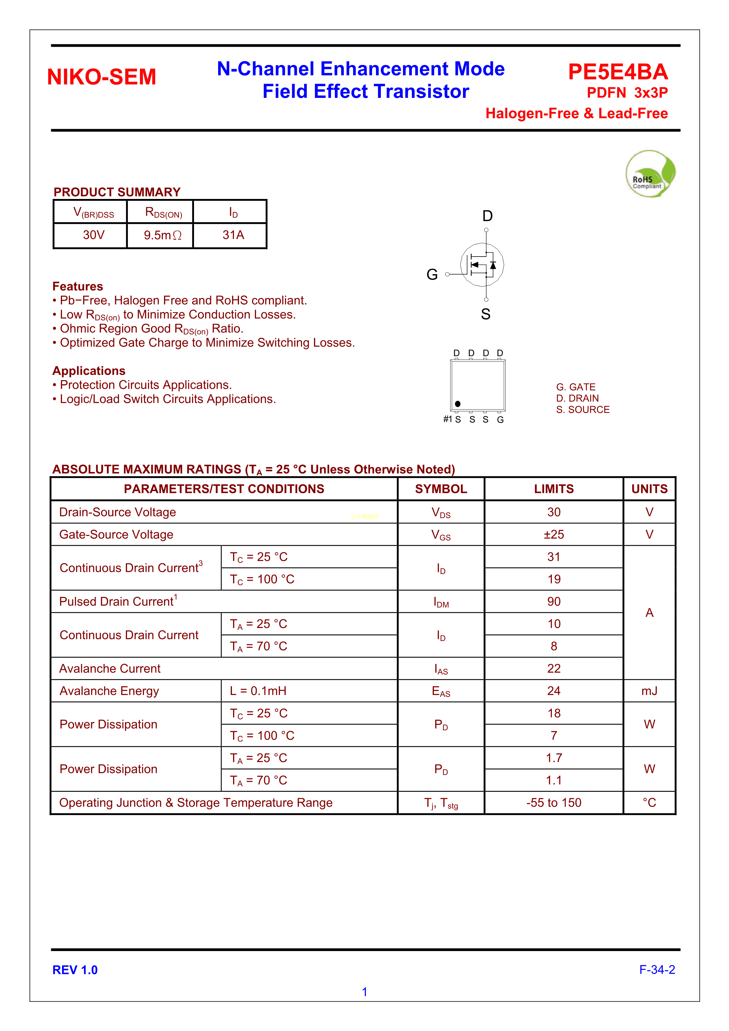 PE5E4BA数据手册DFN(3x3)封装NIKO-SEM(尼克森)PDF规格书,中英文下载