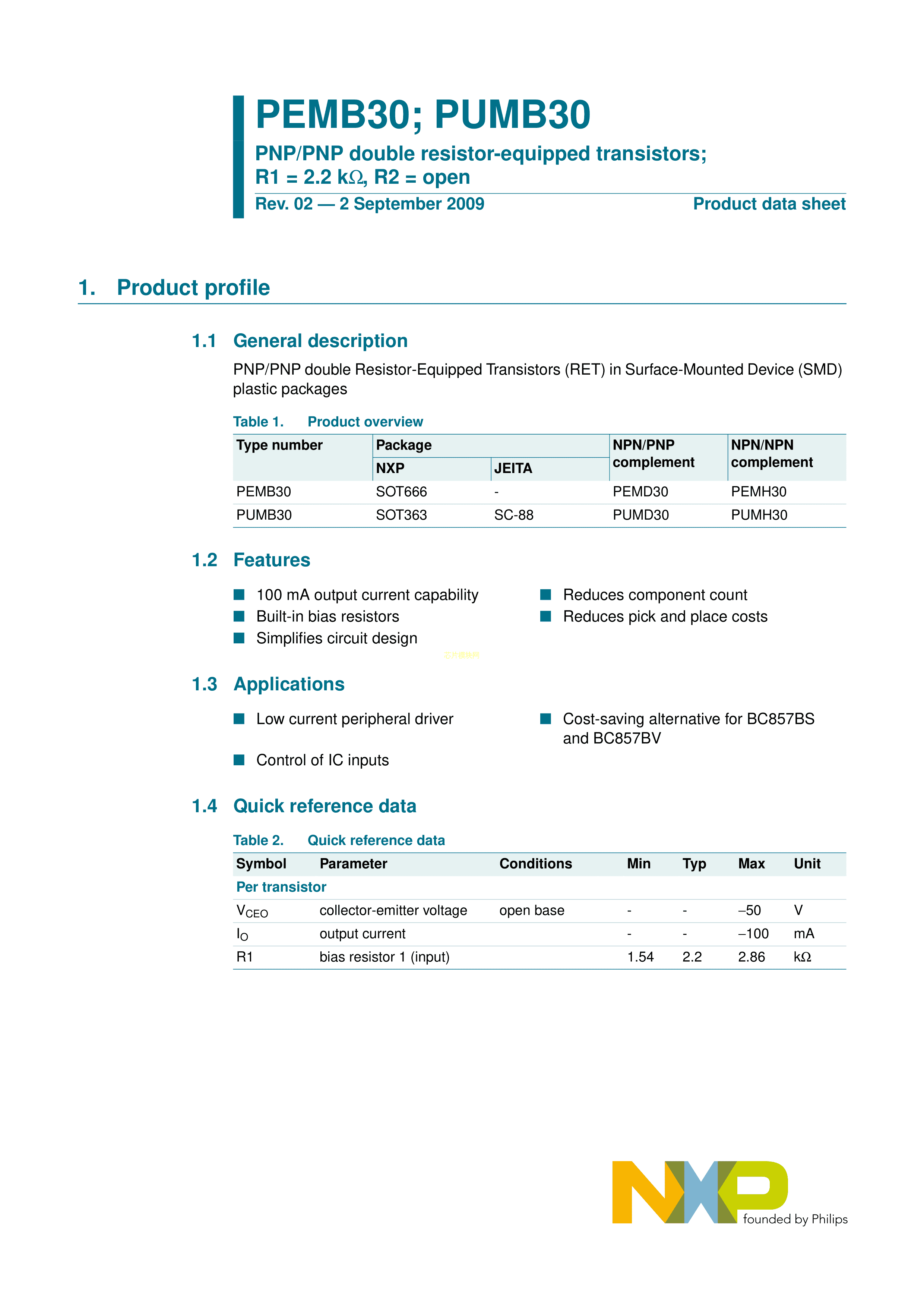 PEMB30115数据手册SOT-666封装Nexperia(安世)PDF规格书,中英文下载