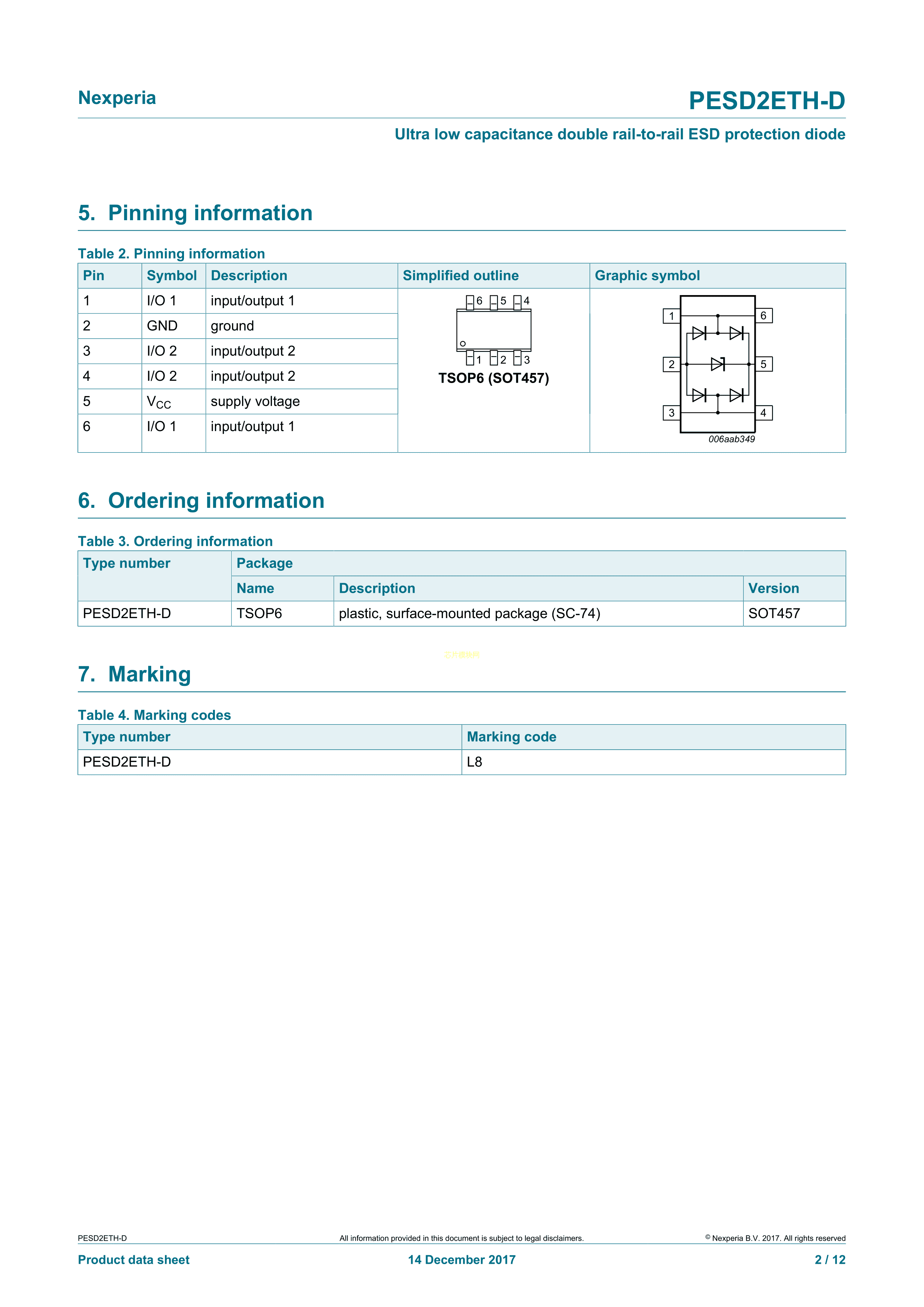 PESD2ETH-DX数据手册TSOP-6封装Nexperia(安世)PDF规格书,中英文下载