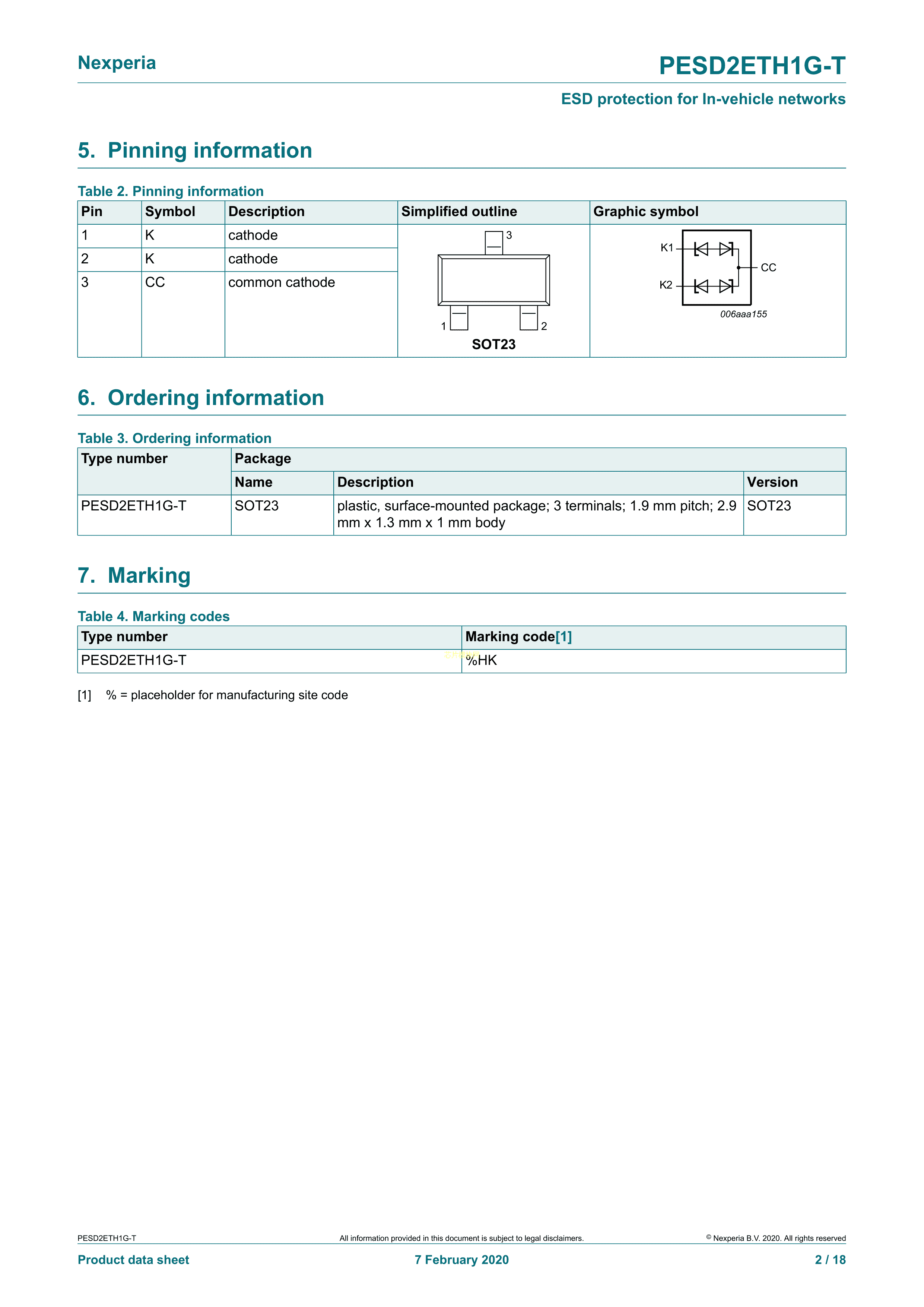 PESD2ETH1G-T数据手册SOT-23封装Nexperia(安世)PDF规格书,中英文下载