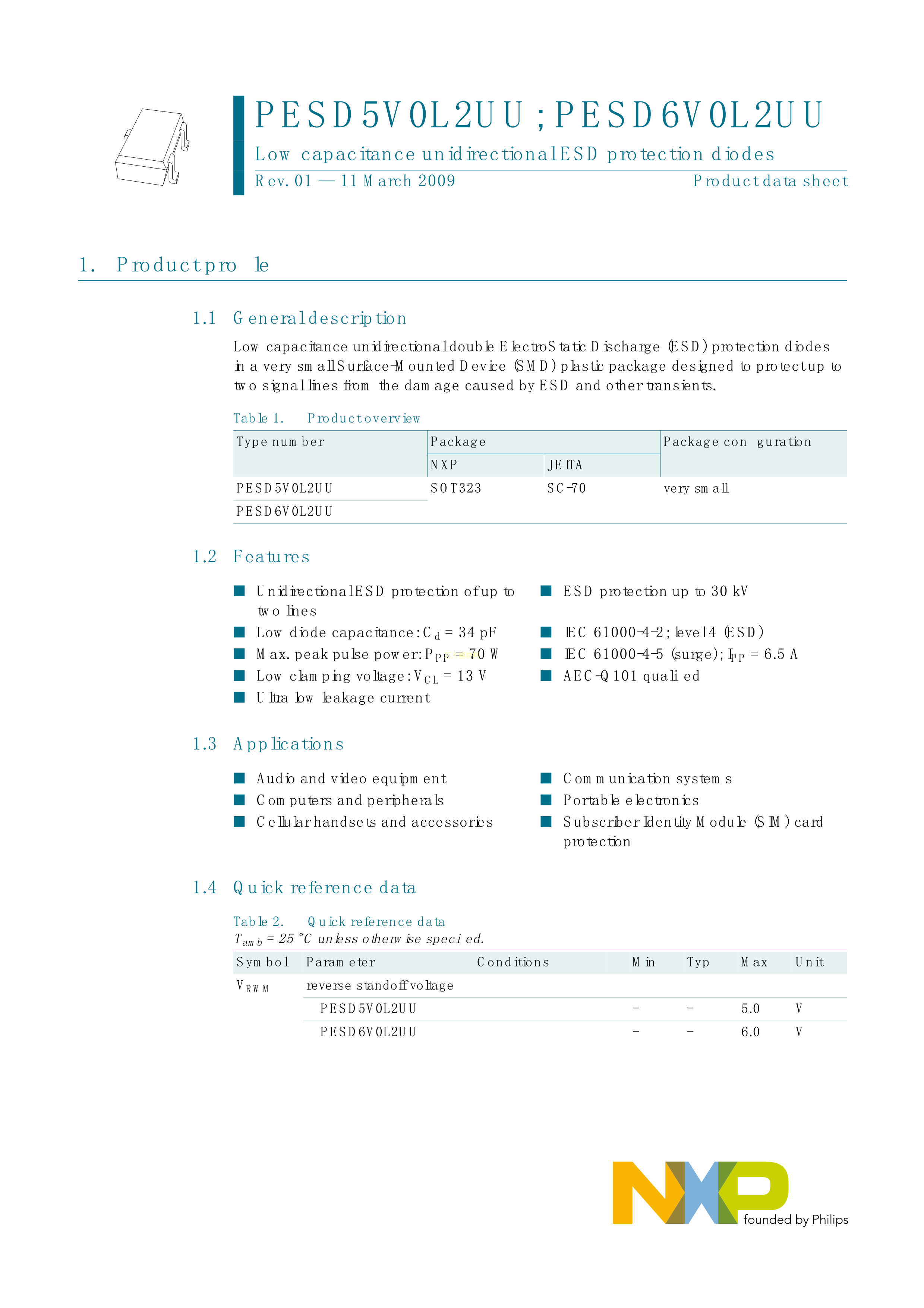 PESD5V0L2UU115数据手册SOT-323(SC-70)封装Nexperia(安世)PDF规