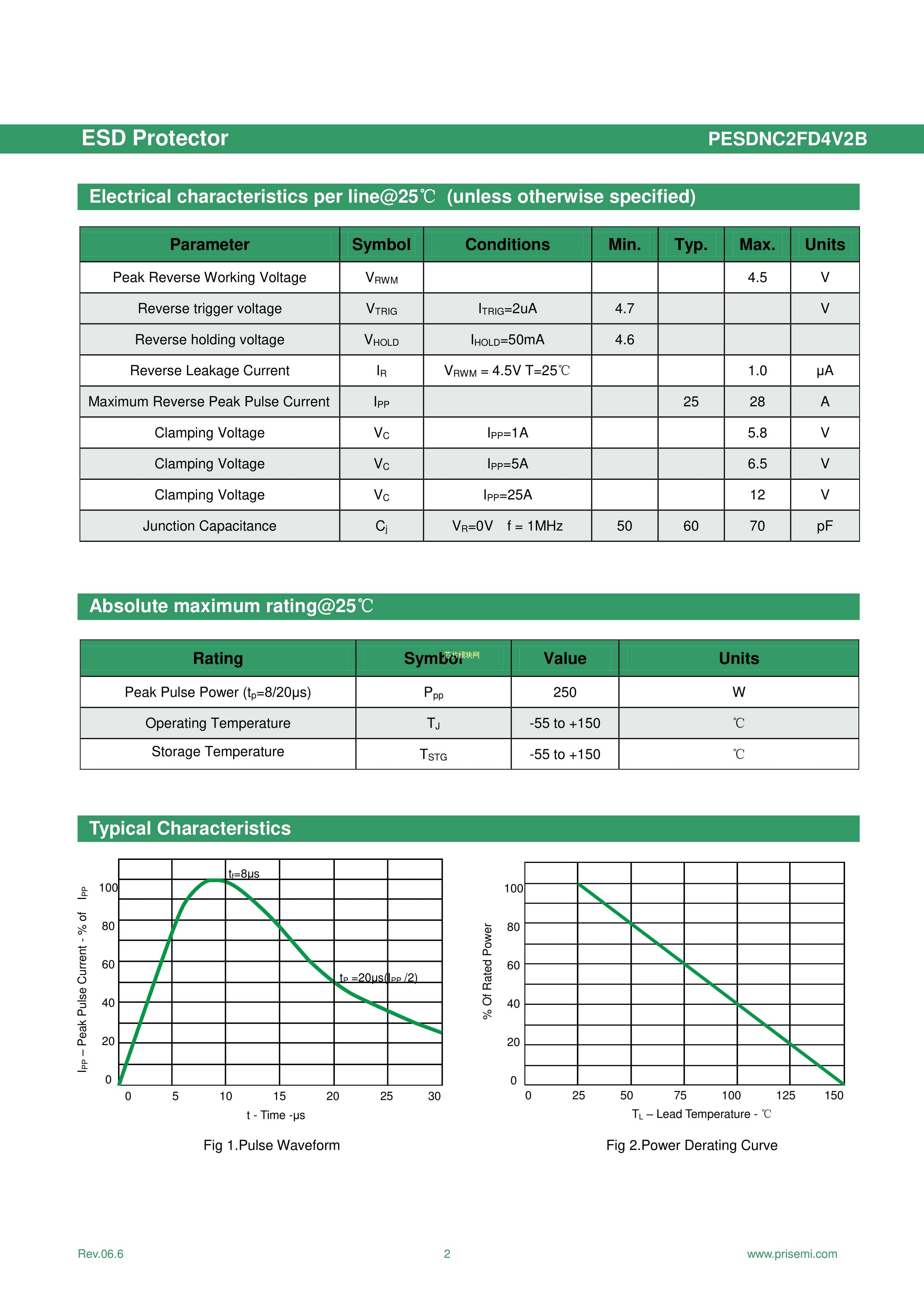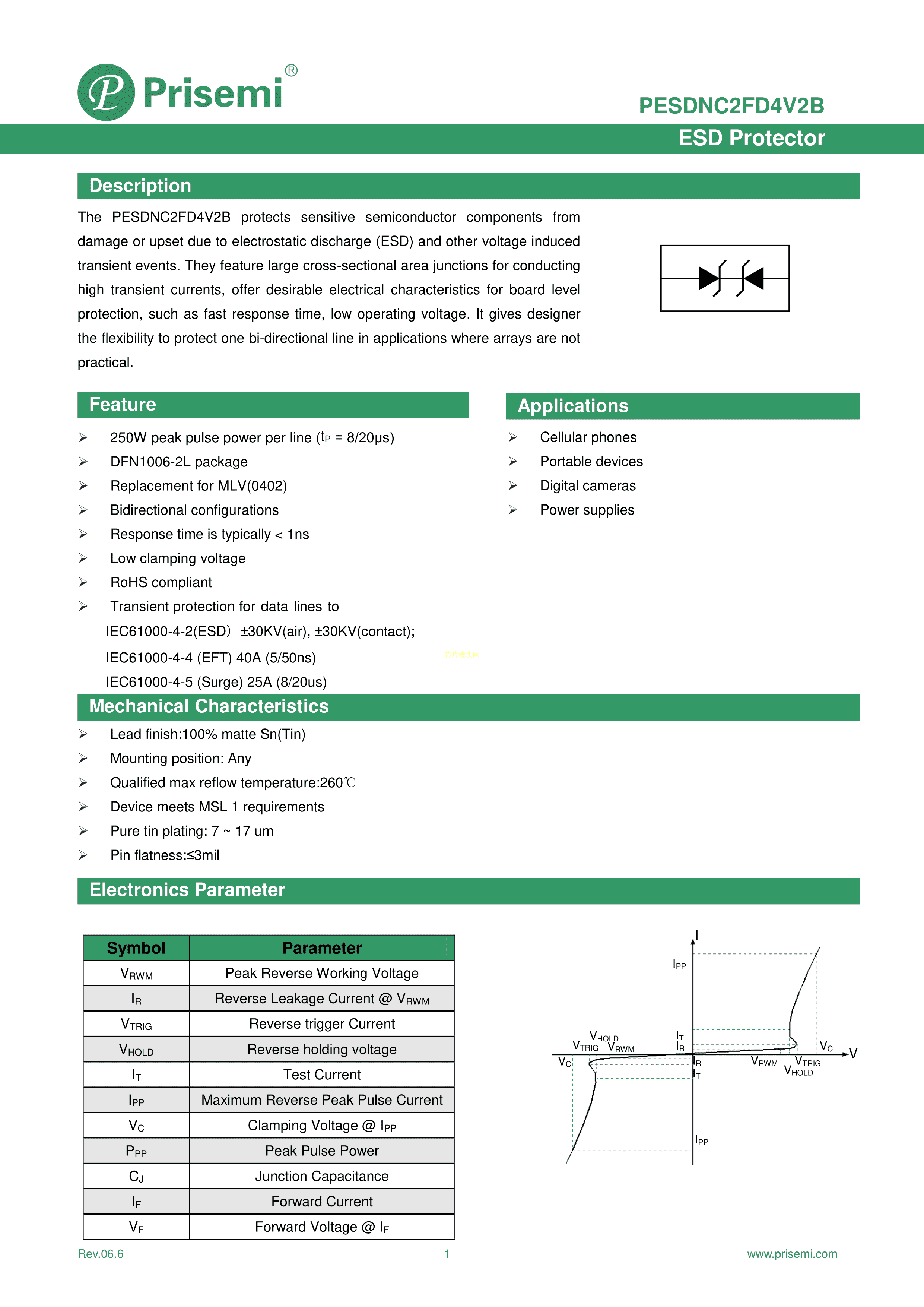 PESDNC2FD4V2B数据手册DFN1006封装Prisemi(芯导)PDF规格书,中英文下载