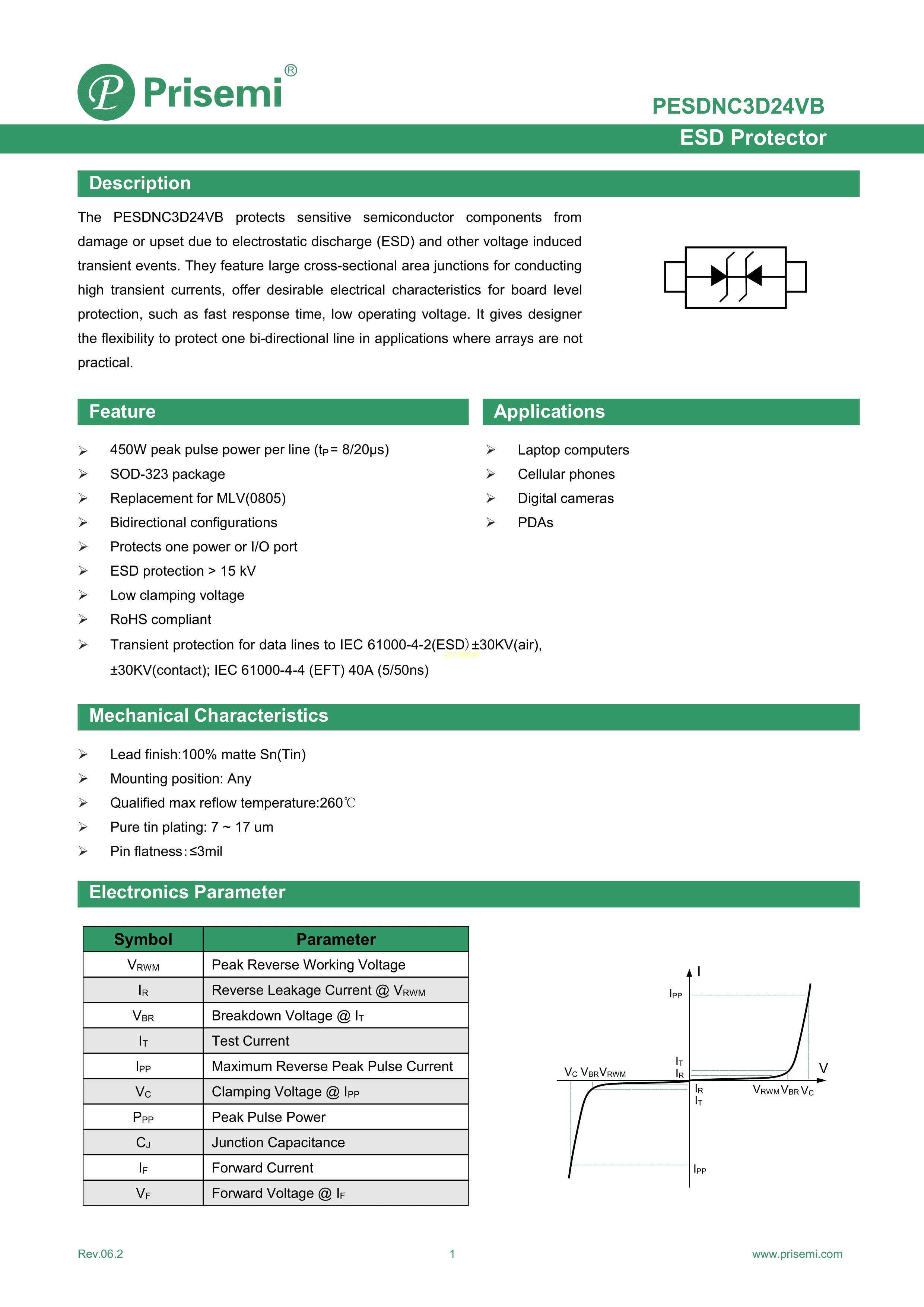 PESDNC3D24VB数据手册SOD-323封装Prisemi(芯导)PDF规格书,中英文下载