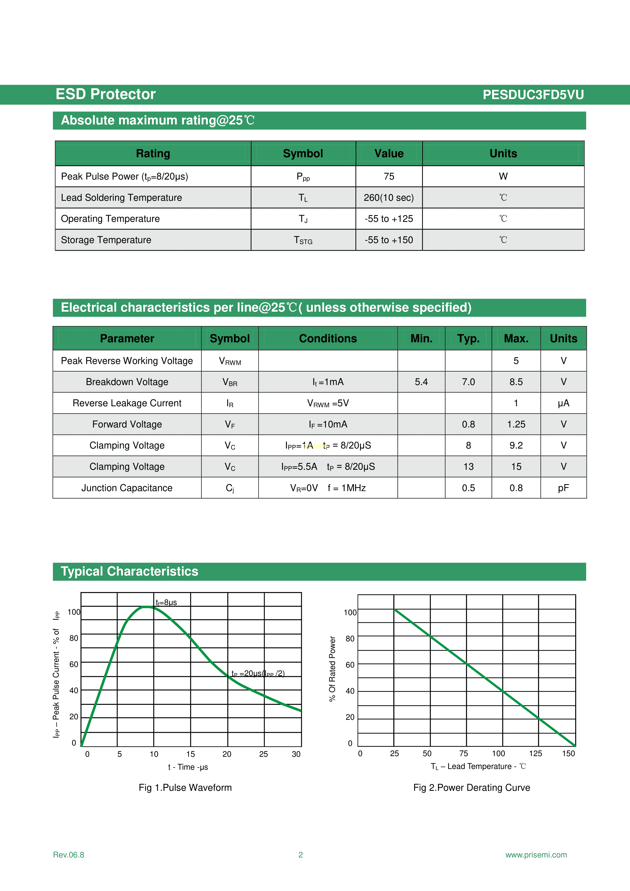 PESDUC3FD5VU数据手册DFN1006-3封装Prisemi(芯导)PDF规格书,中英文下载