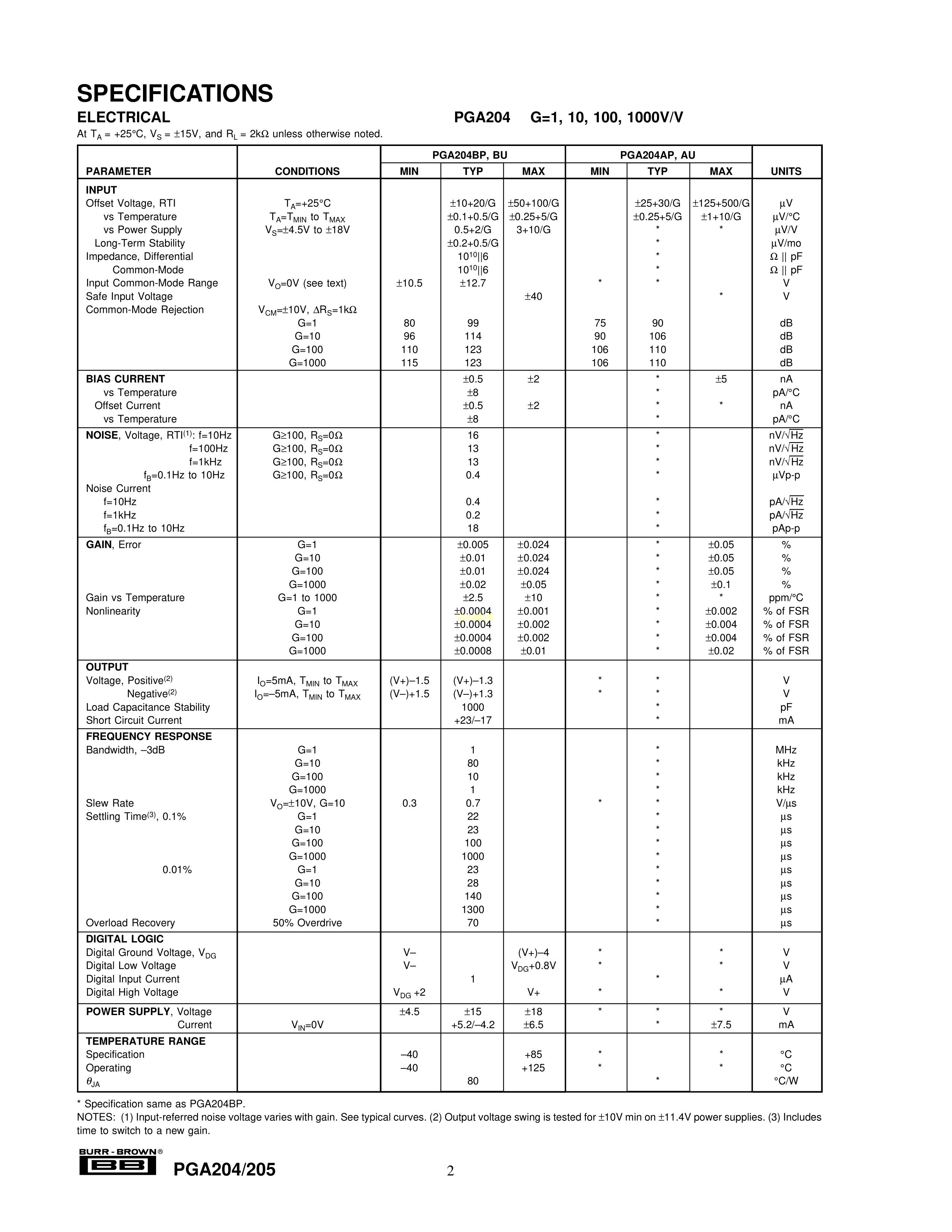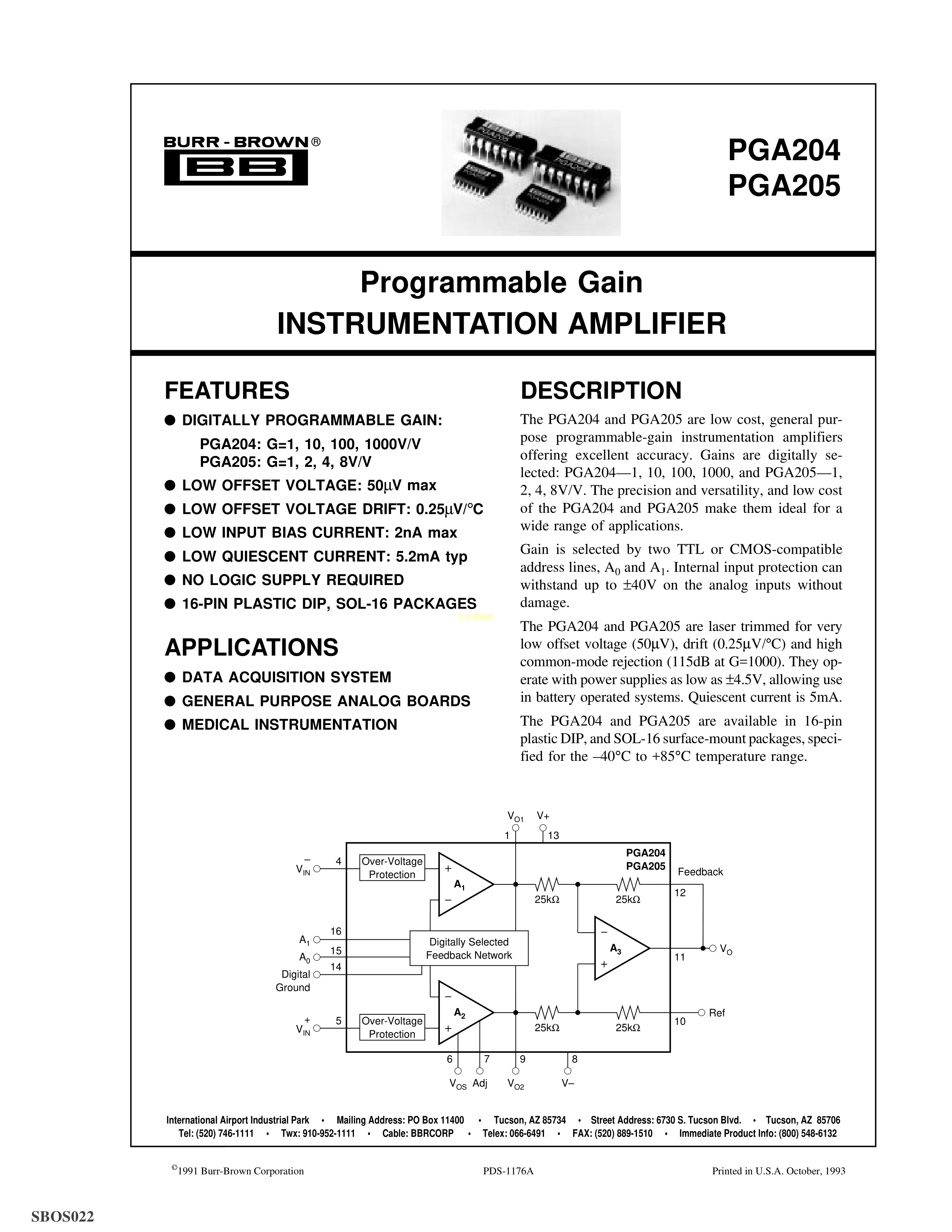 PGA205AU数据手册SOIC-16封装TI(德州仪器)PDF规格书,中英文下载