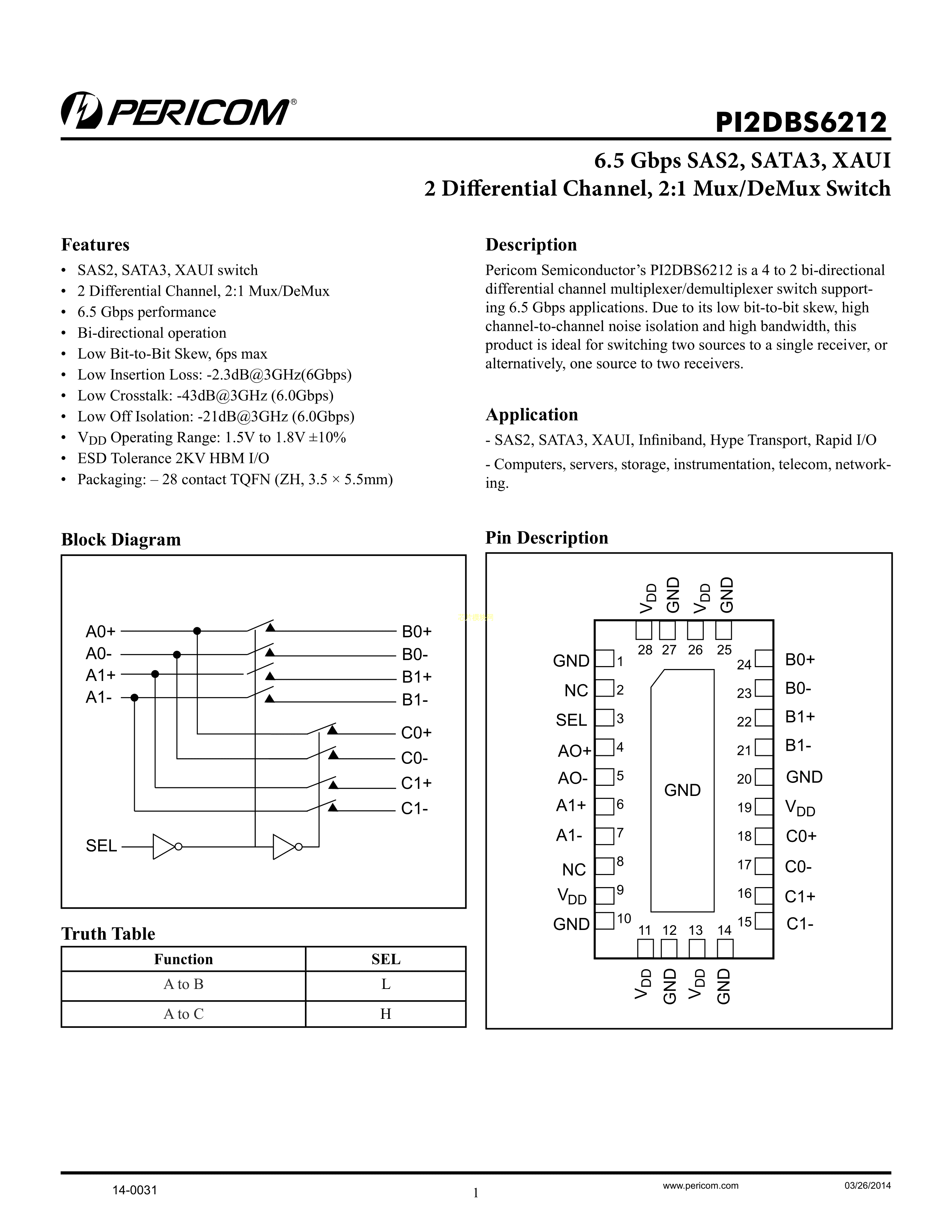 PI2DBS6212ZHE数据手册TQFN-28封装DIODES(美台)PDF规格书,中英文下载