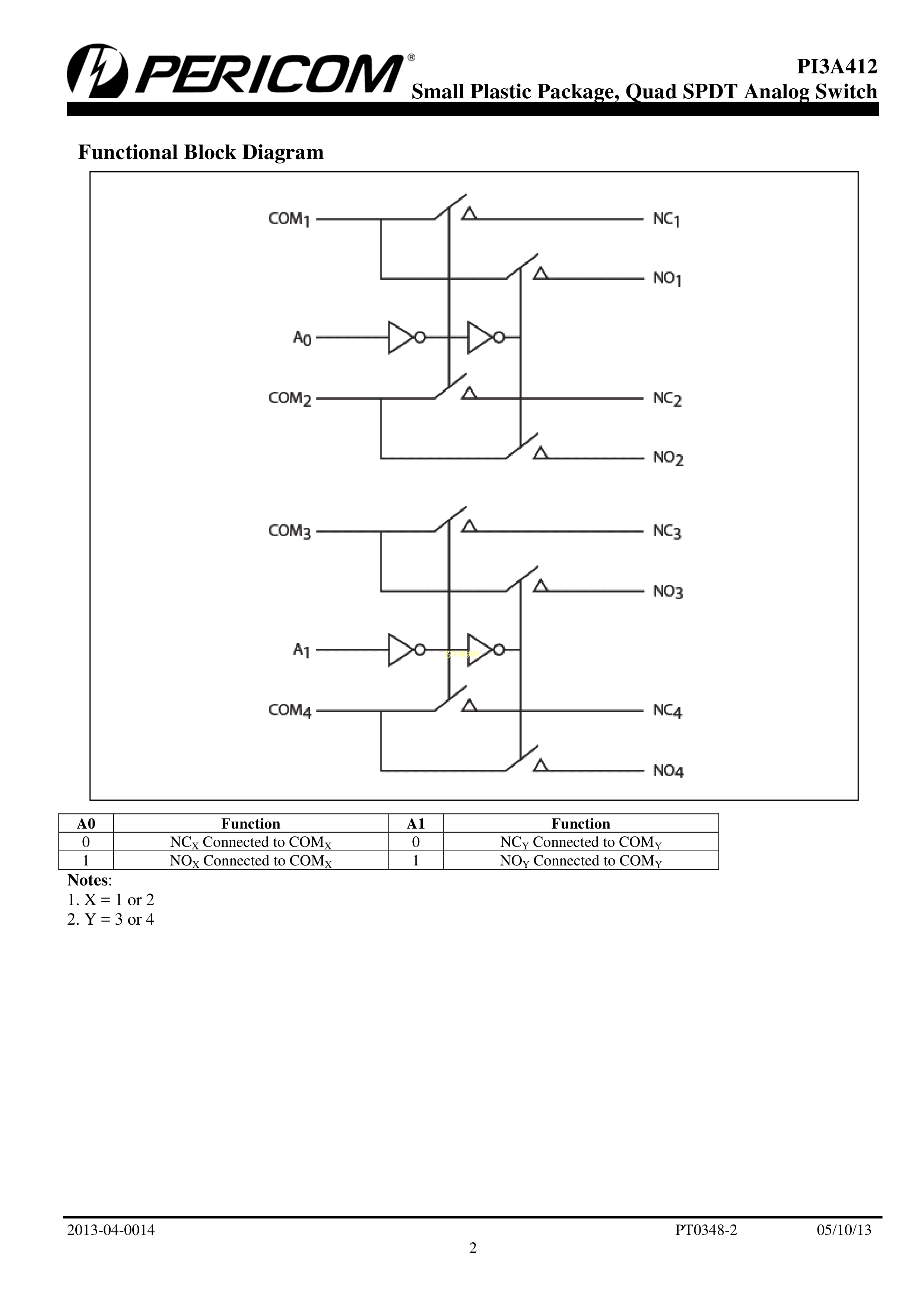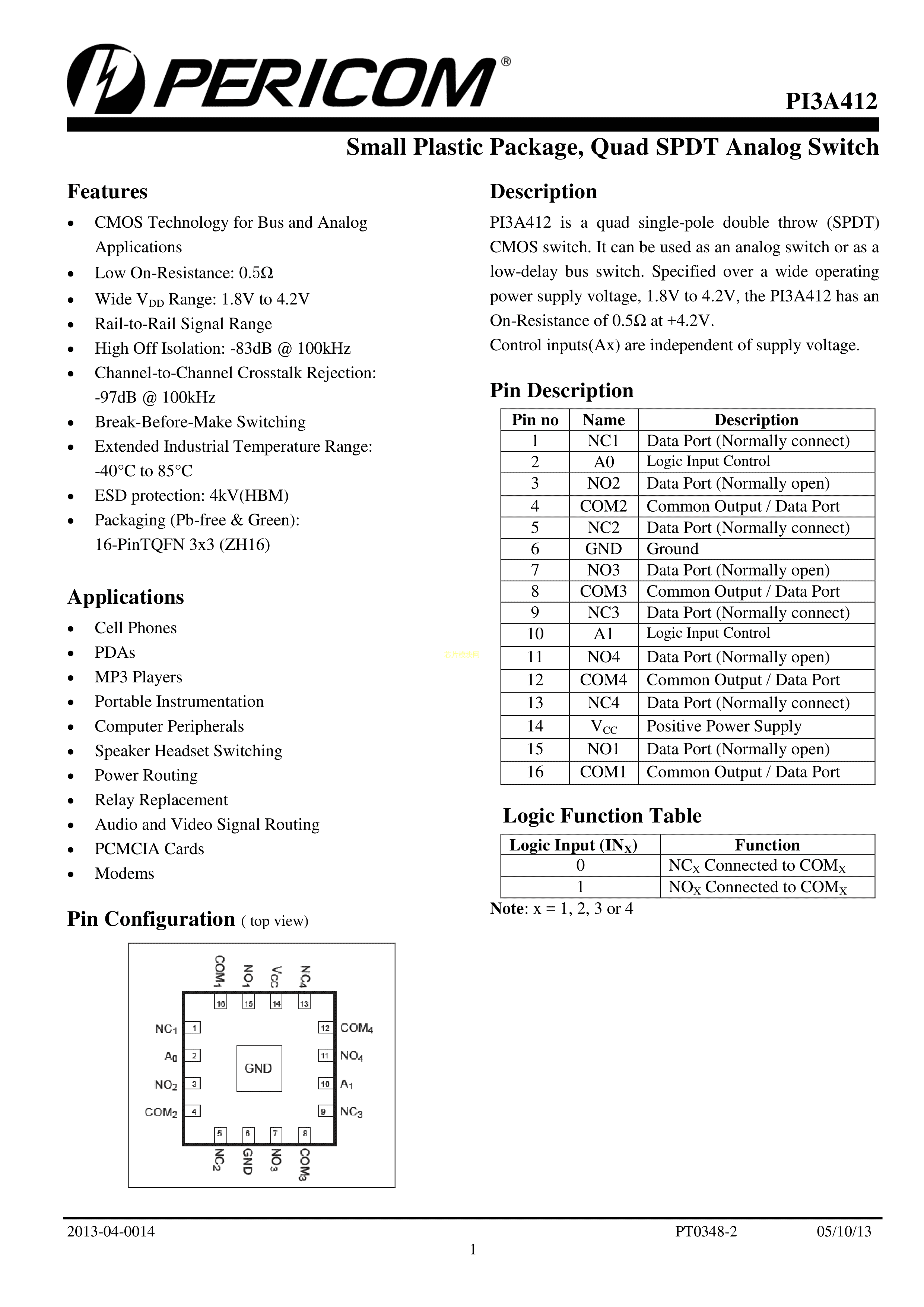 PI3A412ZHEX数据手册TQFN-16封装DIODES(美台)PDF规格书,中英文下载
