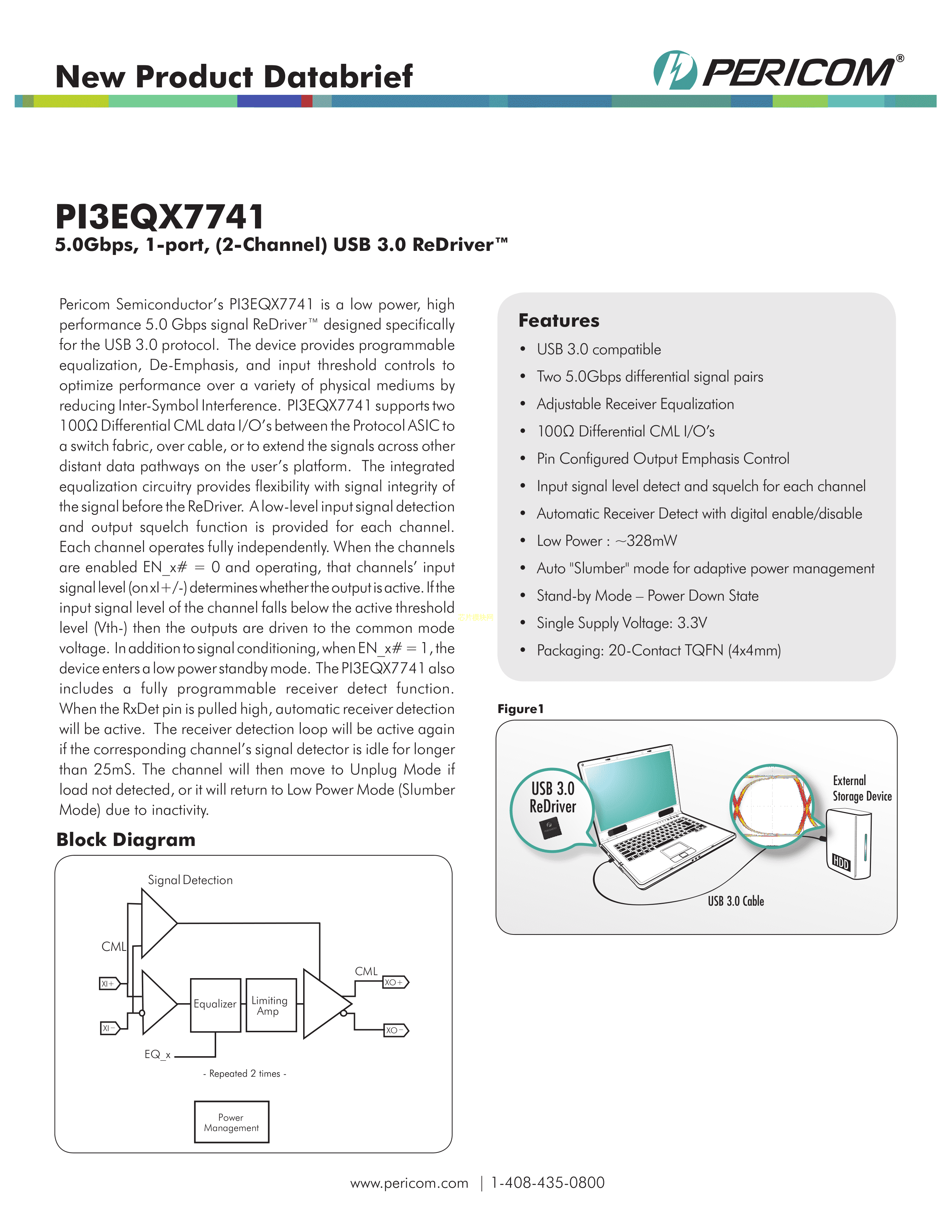 PI3EQX7741AIZDEX数据手册TQFN-20(4x4)封装DIODES(美台)PDF规格书