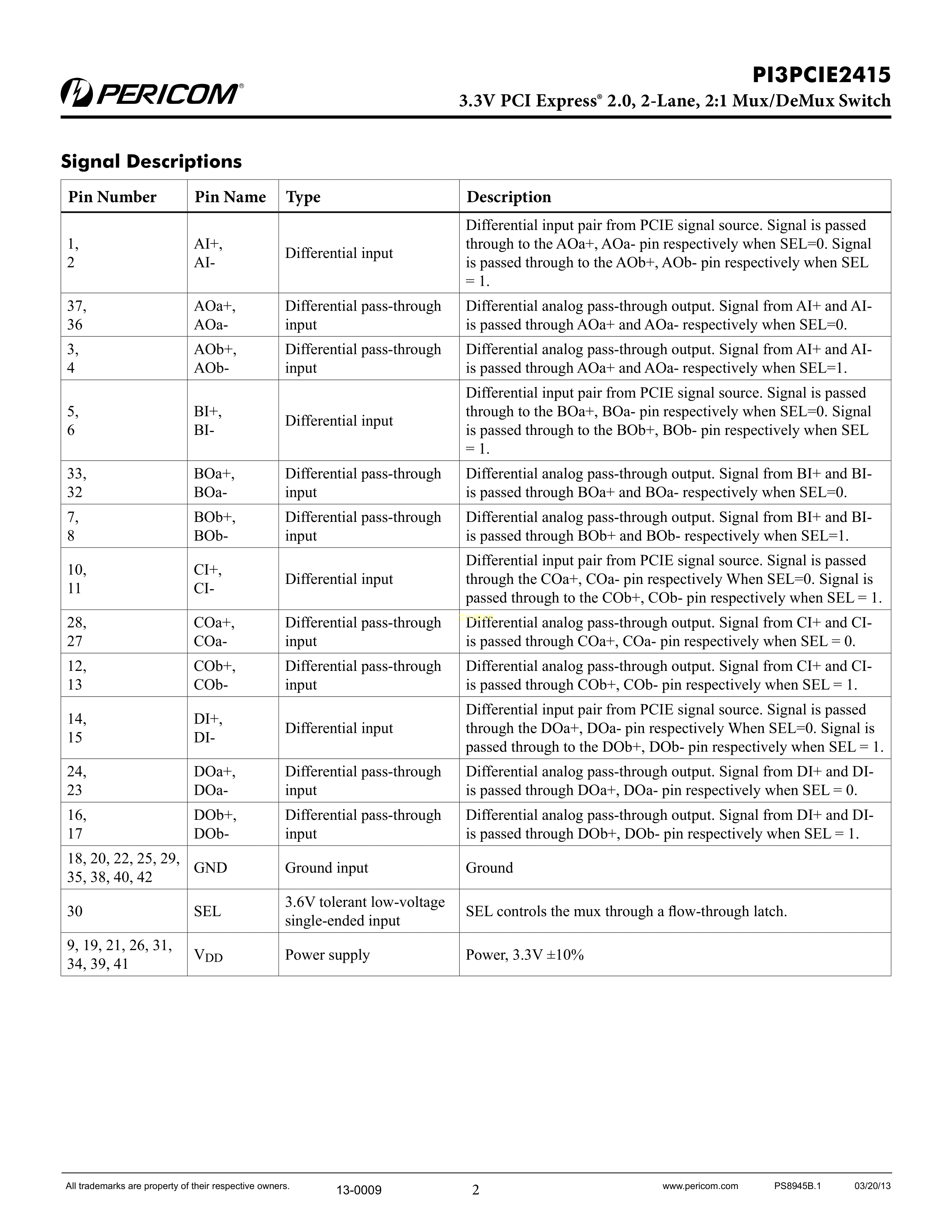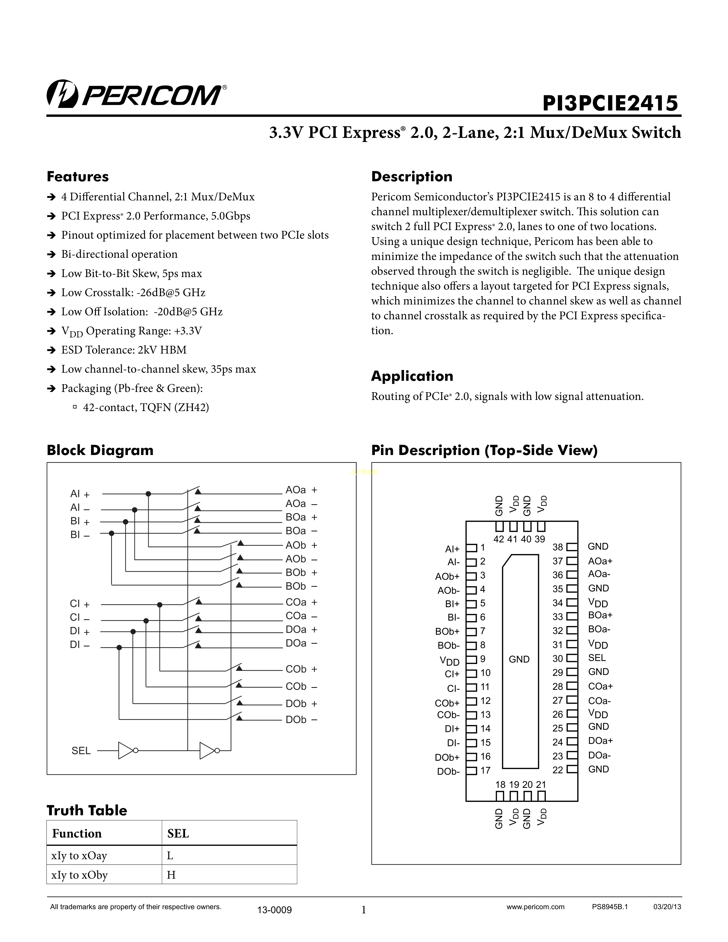 PI3PCIE2415ZHEX数据手册TQFN-42(9x3.5)封装DIODES(美台)PDF规格