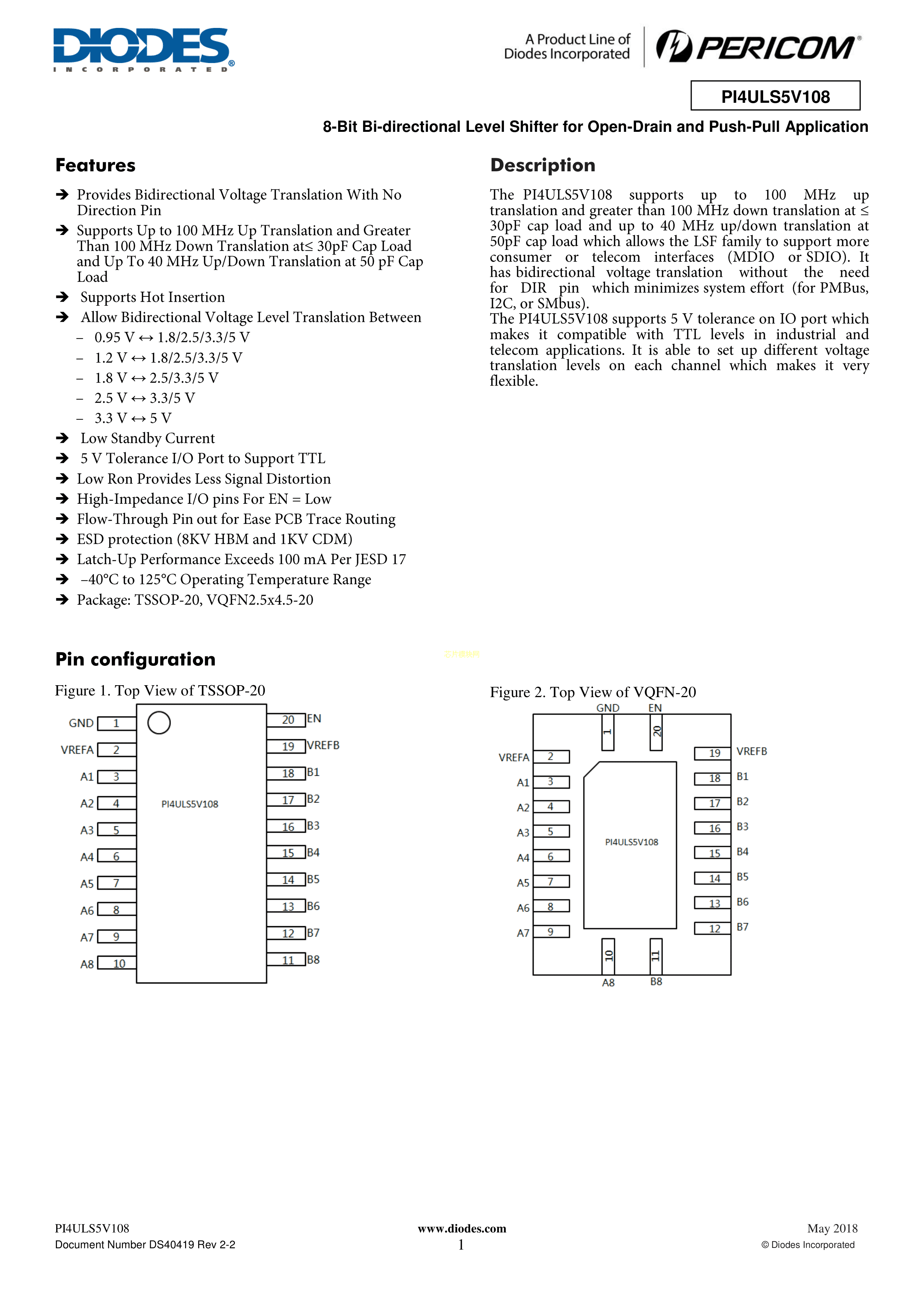PI4ULS5V108ZBAEX数据手册VQFN-20封装DIODES(美台)PDF规格书,中英文下