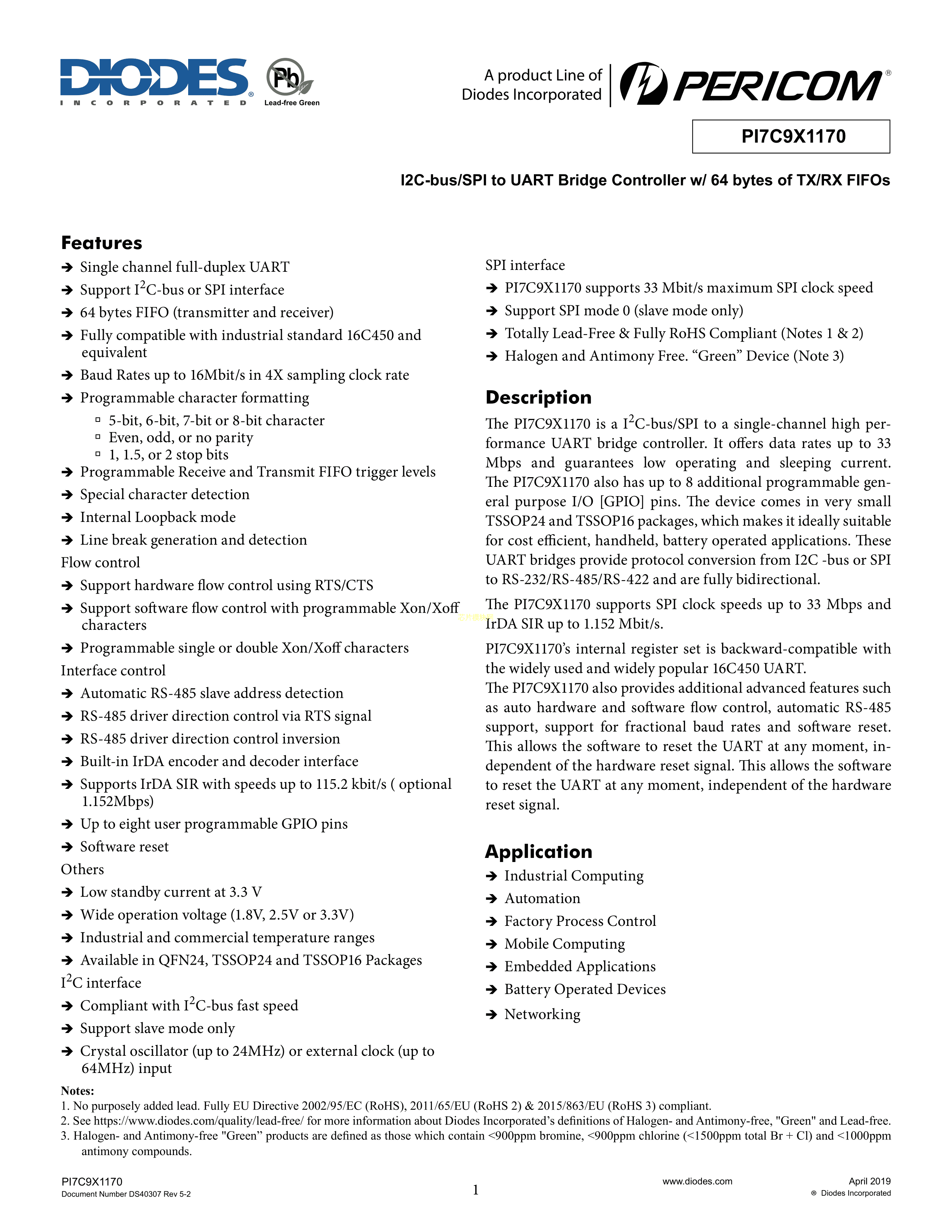 PI7C9X1170ACLEX数据手册TSSOP-24封装DIODES(美台)PDF规格书,中英文下