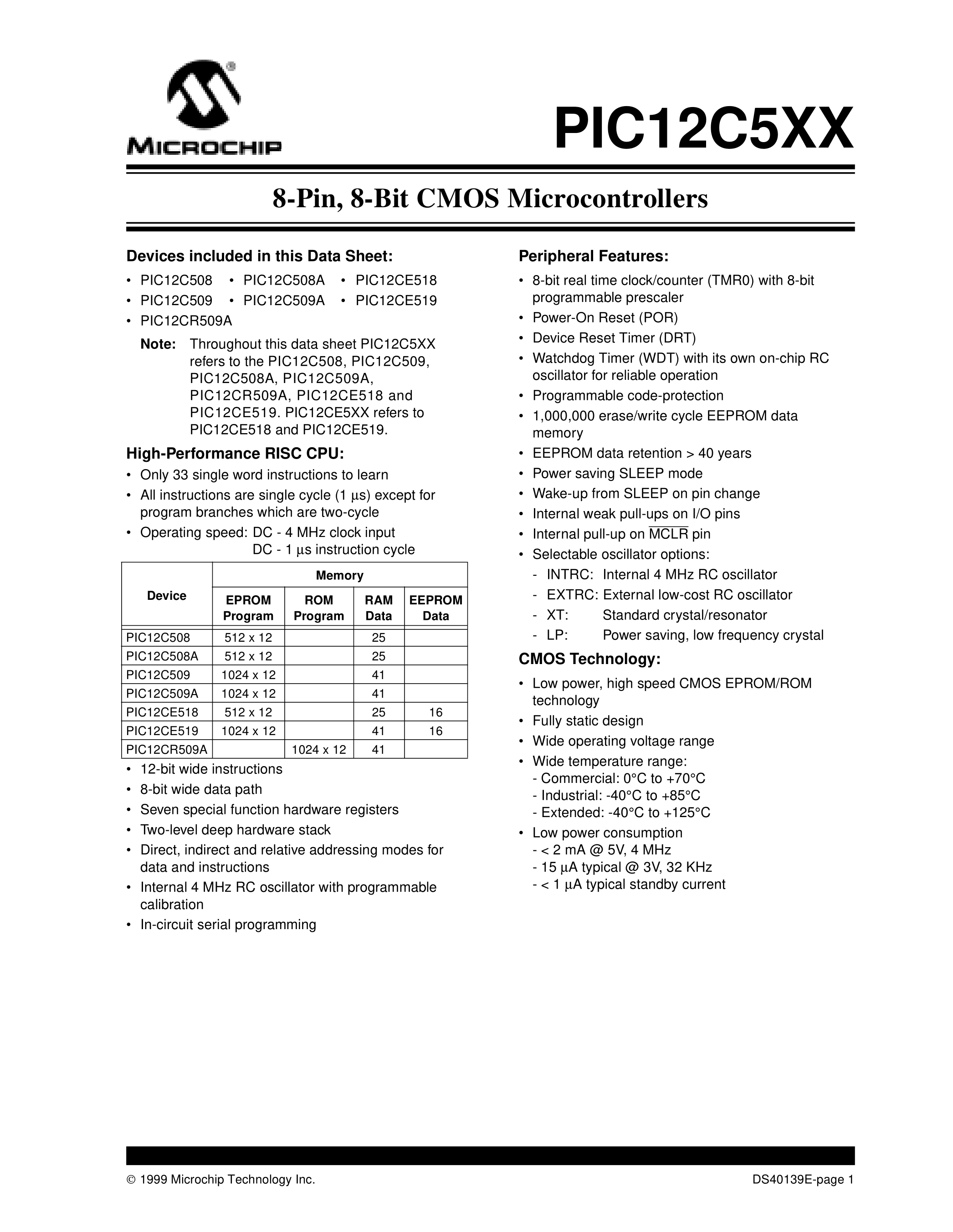PIC12CE518T-04-SN数据手册SOIC-8封装MICROCHIP(美国微芯)PDF规格书