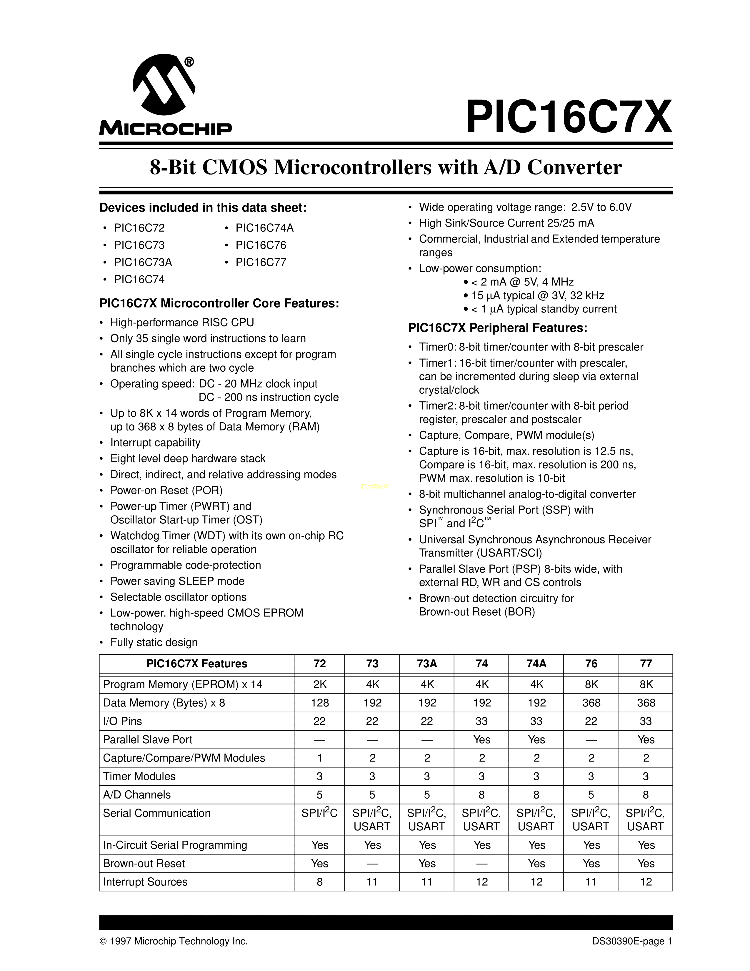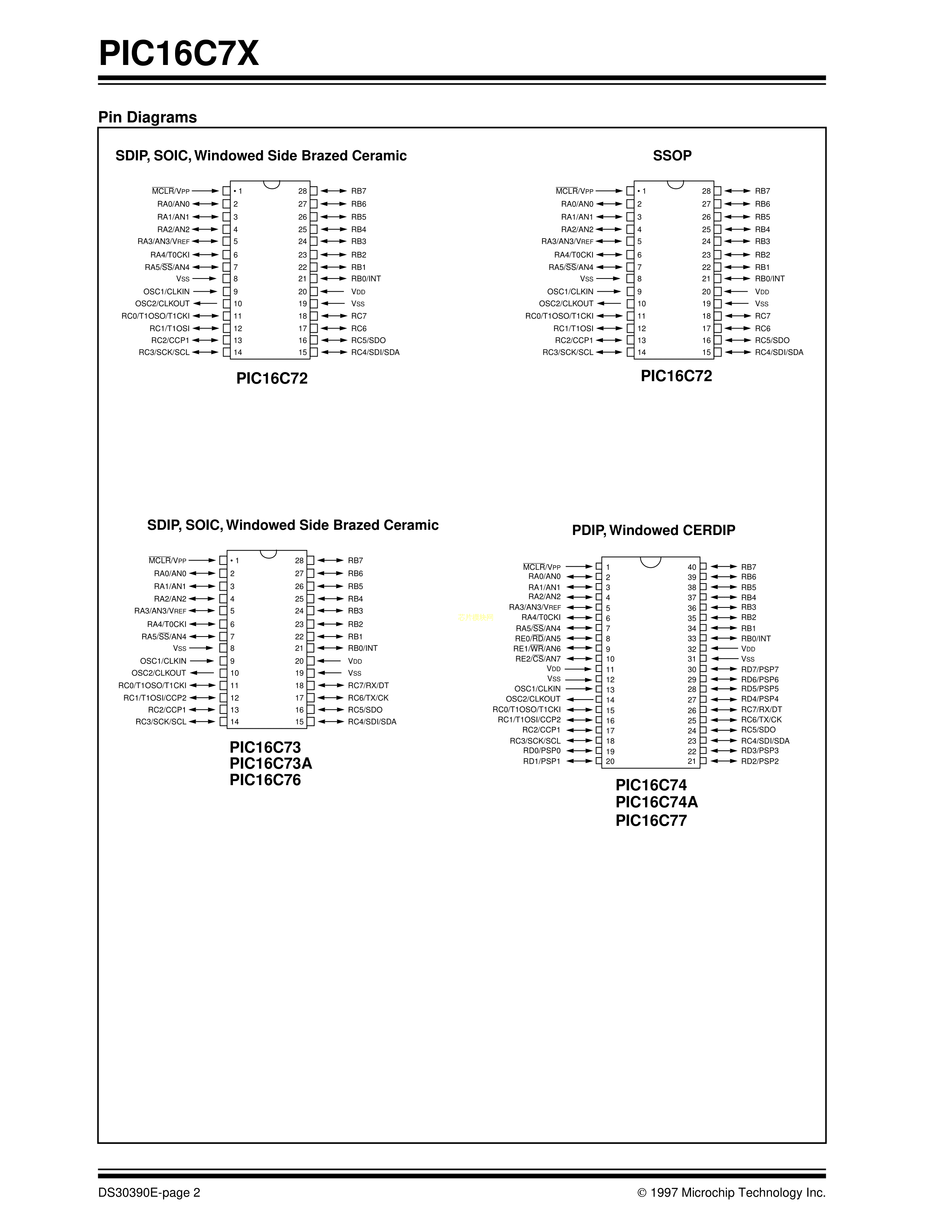 PIC16C77-20I-P数据手册PDIP-40封装MICROCHIP(美国微芯)PDF规格书,中