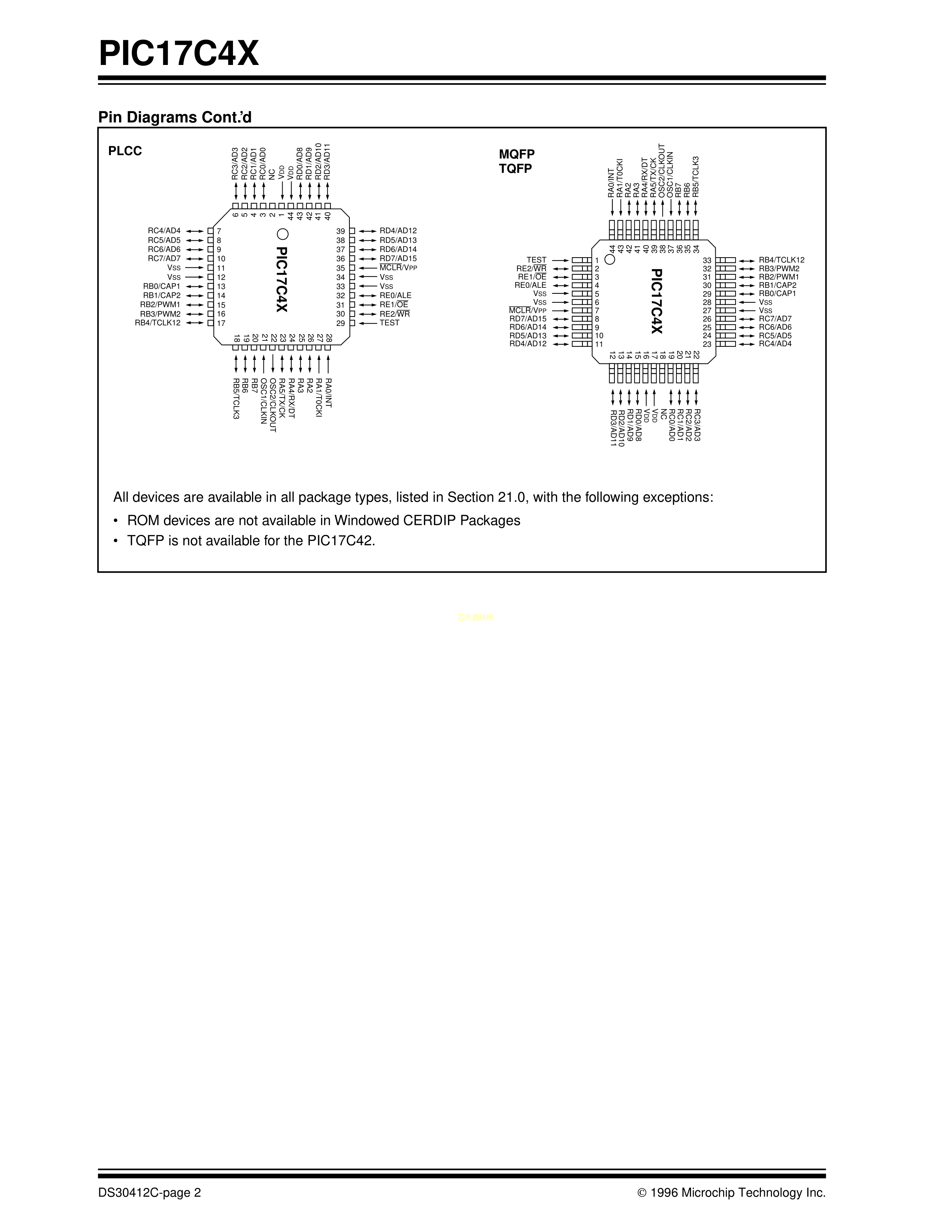 PIC17C42A-16I-P数据手册PDIP-40封装MICROCHIP(美国微芯)PDF规格书,