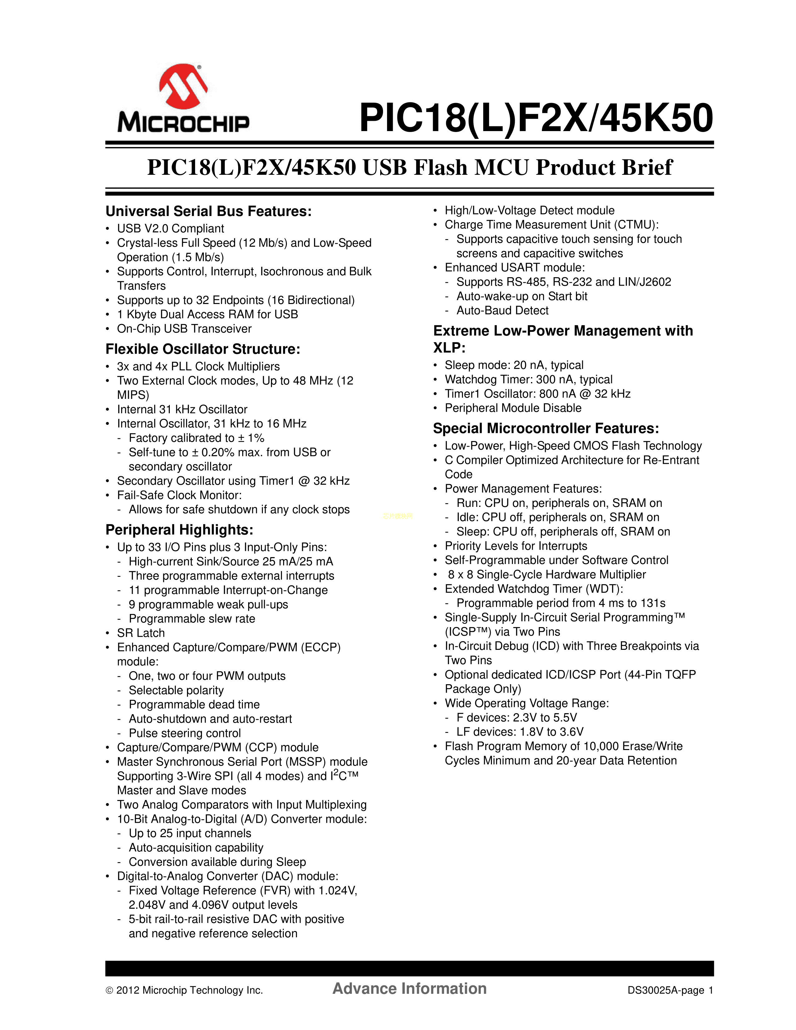 PIC18F25K50-E-SP数据手册SPDIP-28封装MICROCHIP(美国微芯)PDF规格