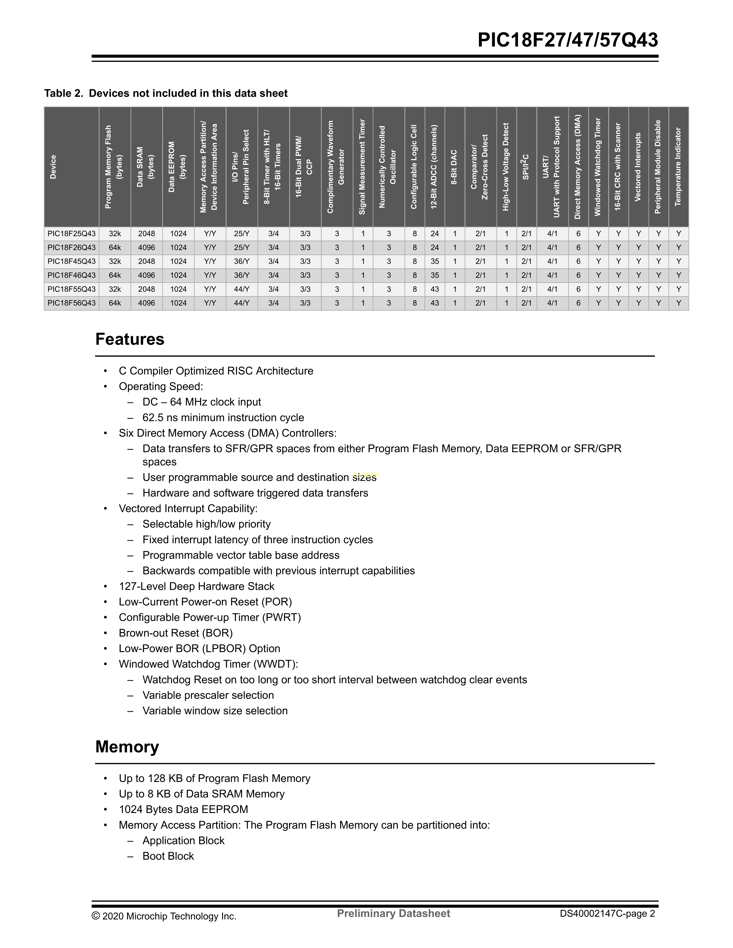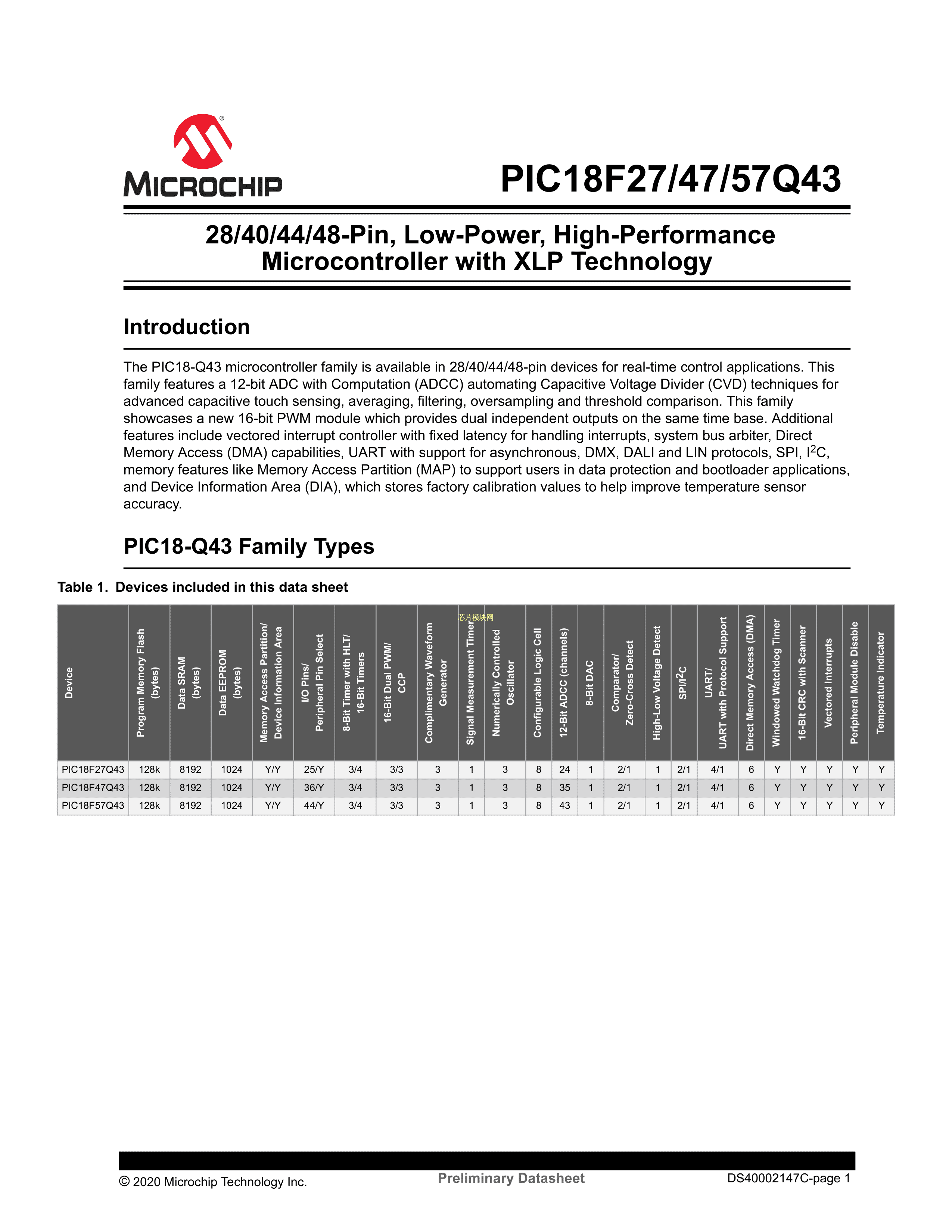 PIC18F27Q43T-I-STX数据手册VQFN-28封装MICROCHIP(美国微芯)PDF规格书,中英文下载