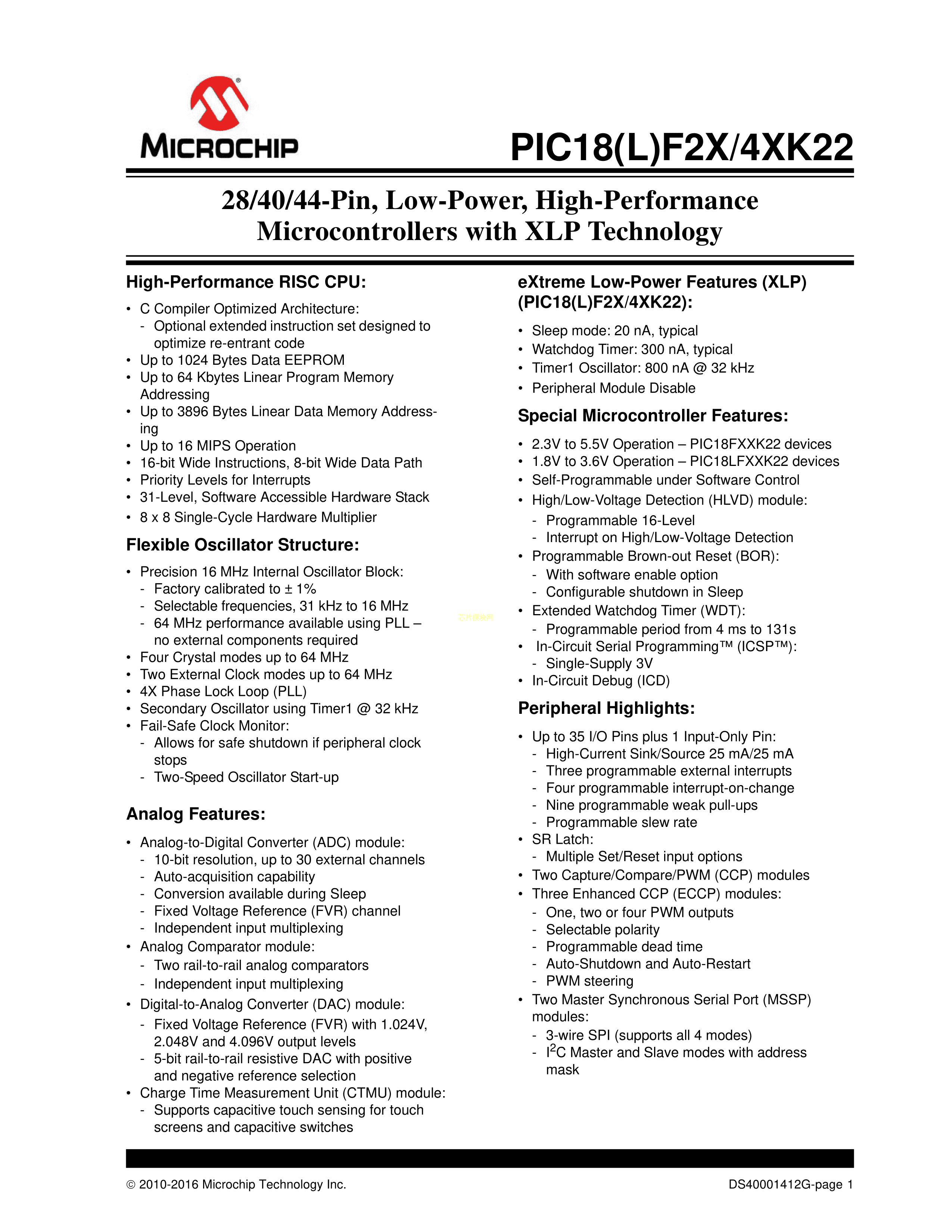 PIC18LF24K22T-I-MV数据手册UQFN-28封装MICROCHIP(美国微芯)PDF规格书,中英文下载