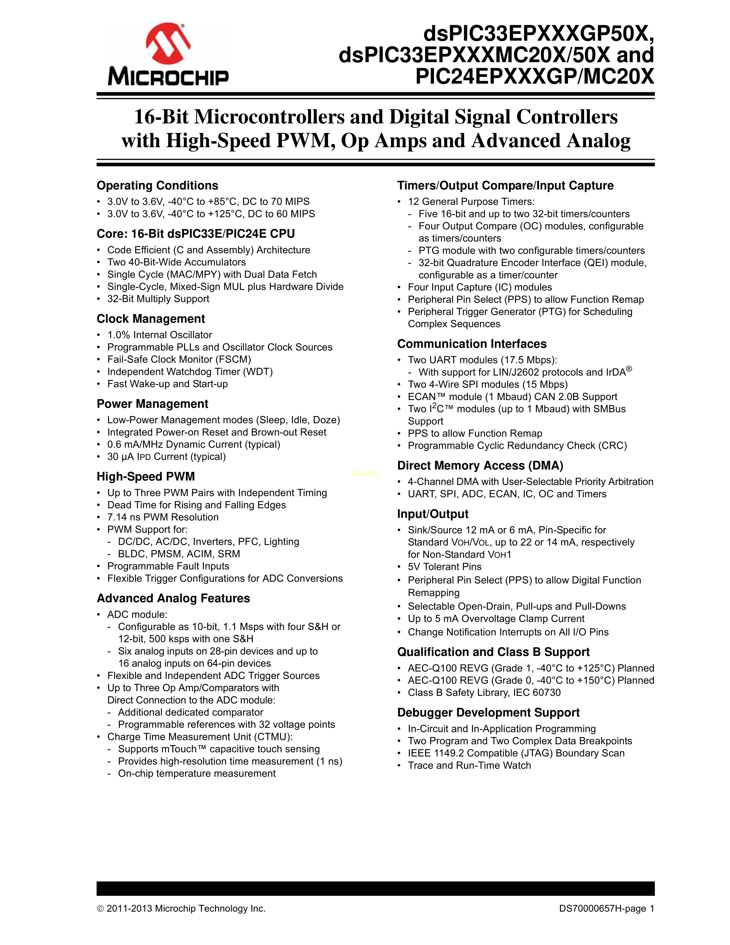 PIC24EP64GP202-I-SP数据手册SPDIP-28封装MICROCHIP(美国微芯)PD