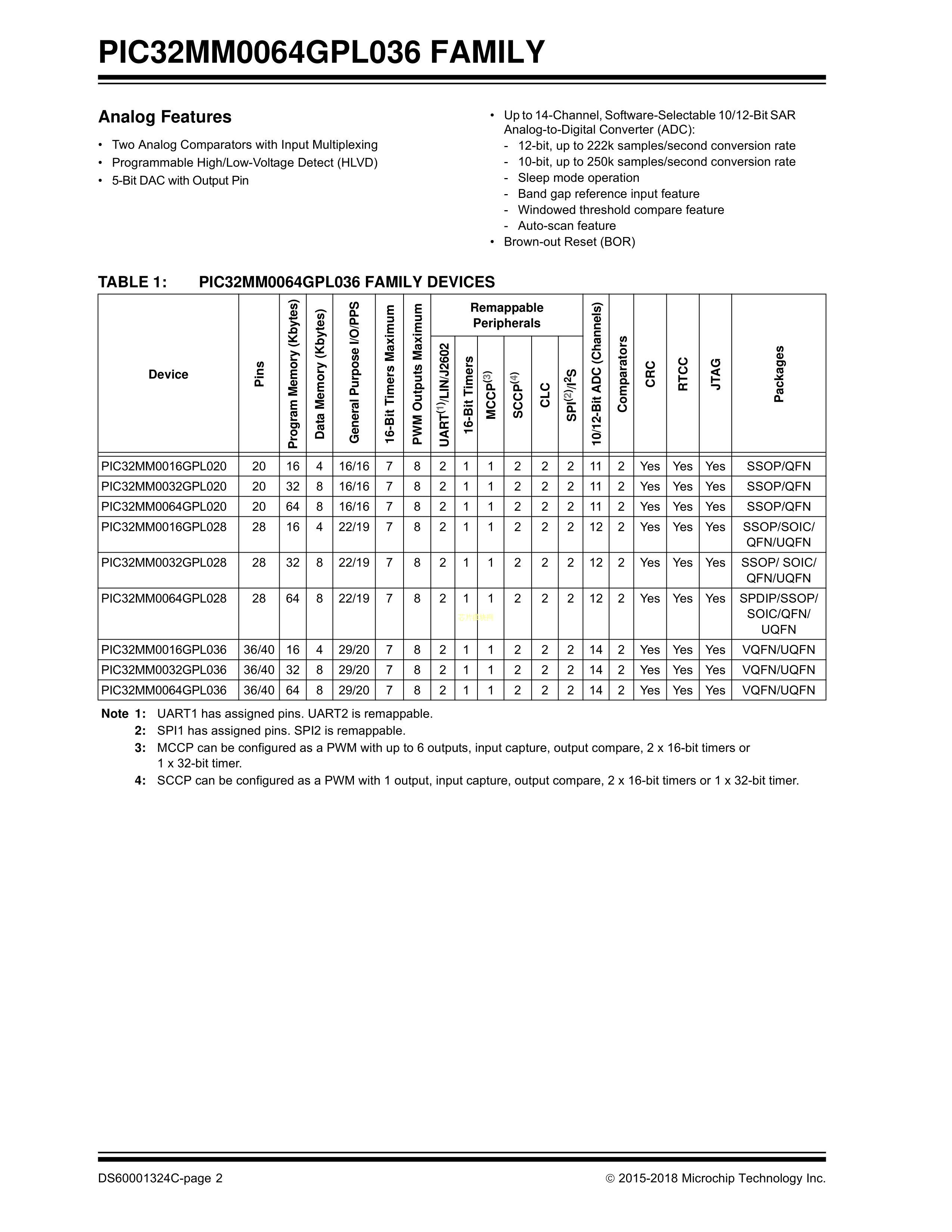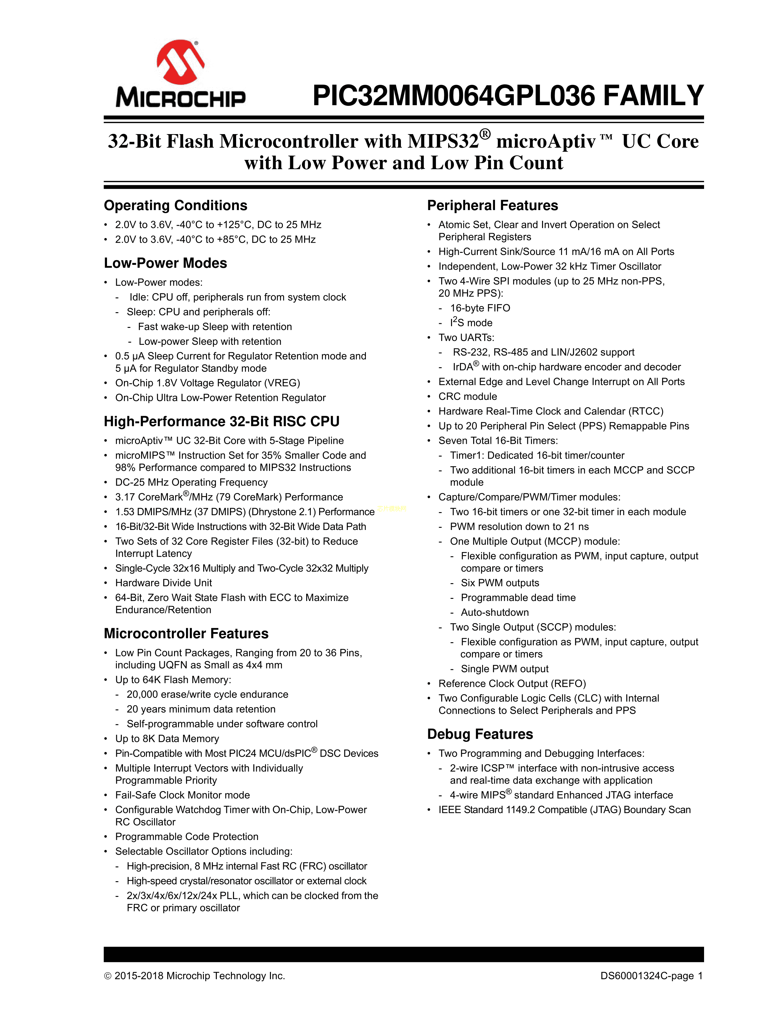 PIC32MM0064GPL020T-I-ML数据手册QFN-20封装MICROCHIP(美国微芯)
