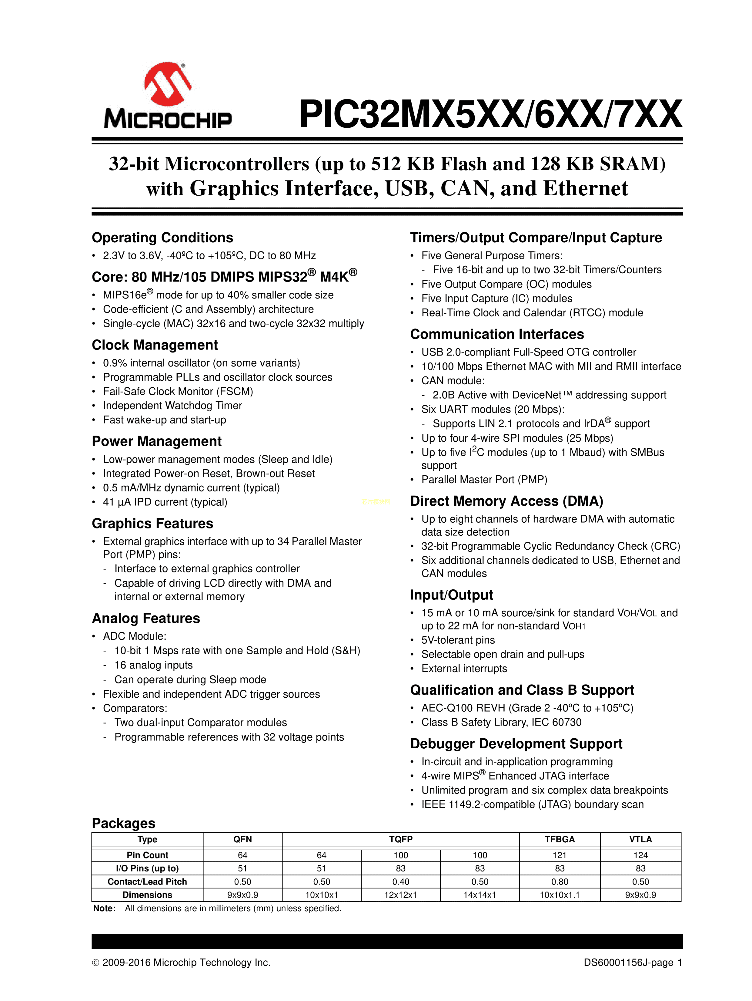 PIC32MX775F512L-80I-PF数据手册TQFP-100封装MICROCHIP(美国微芯