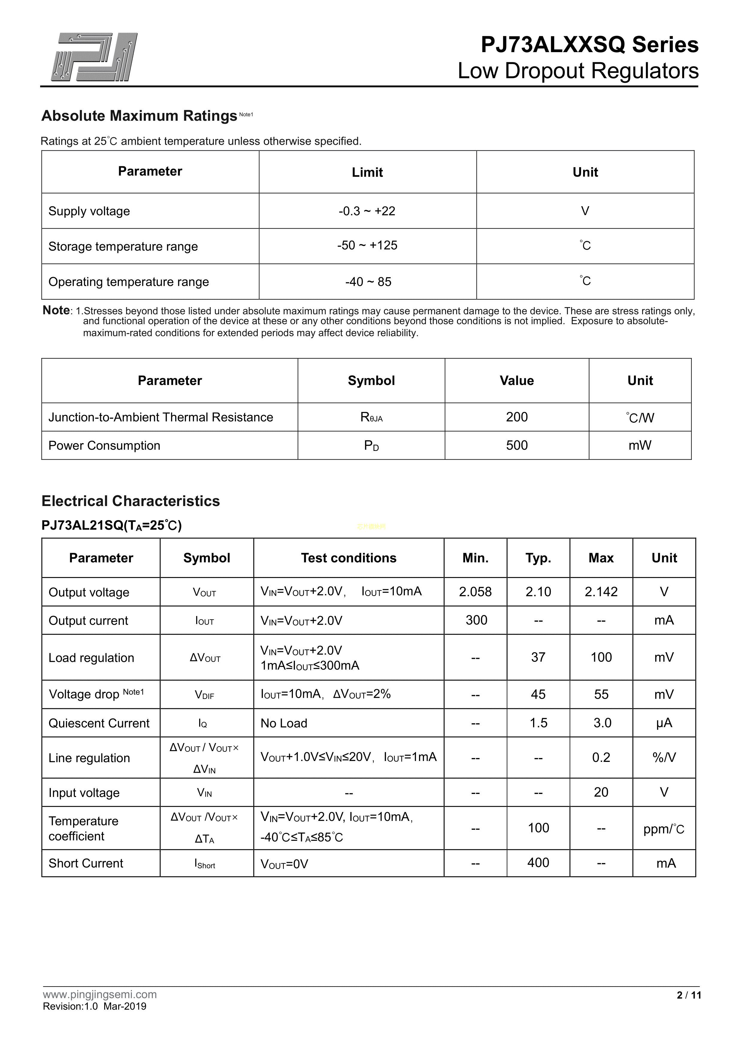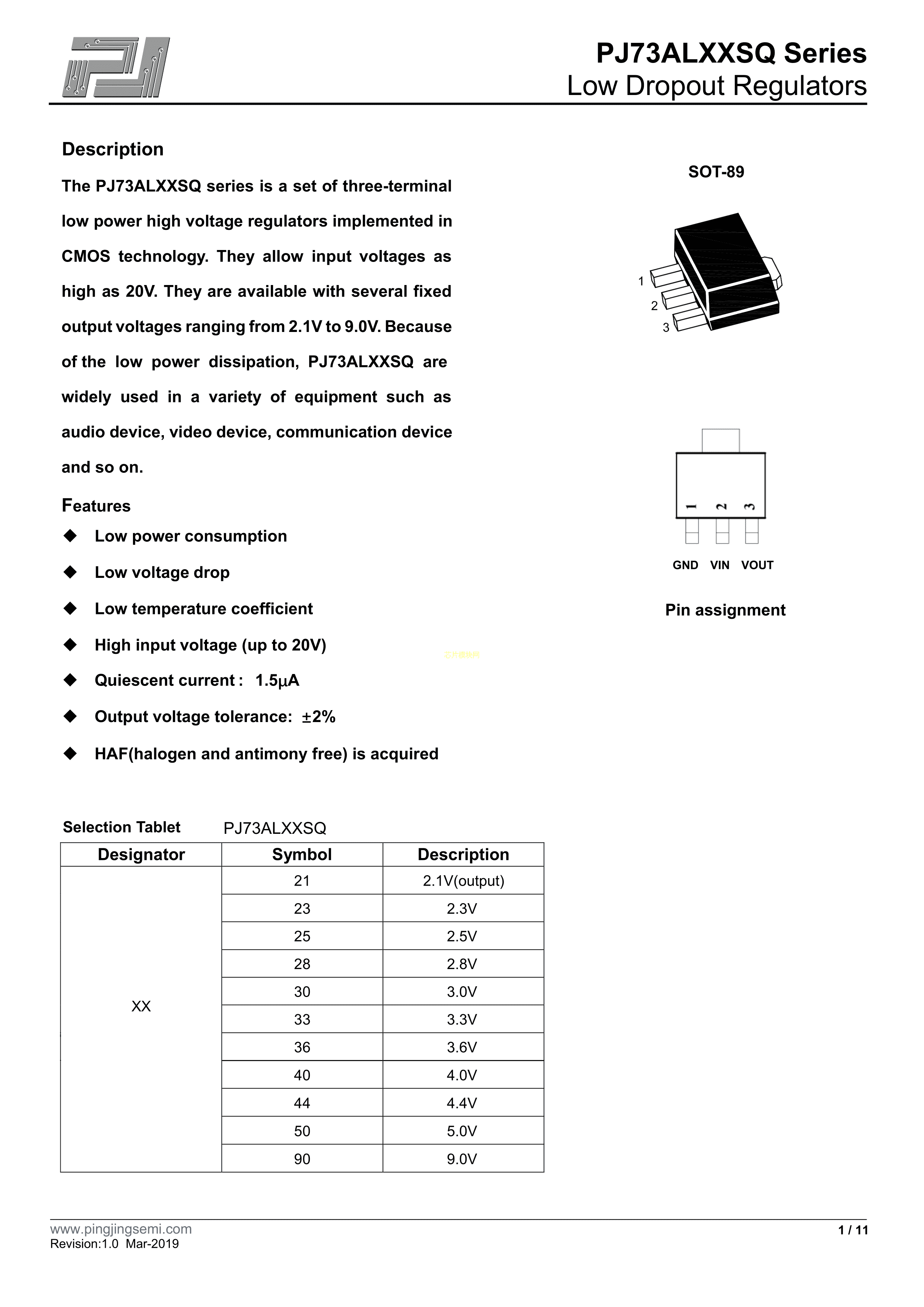 PJ73AL50SQ数据手册SOT-89封装PJSEMI(平晶微)PDF规格书,中英文下载