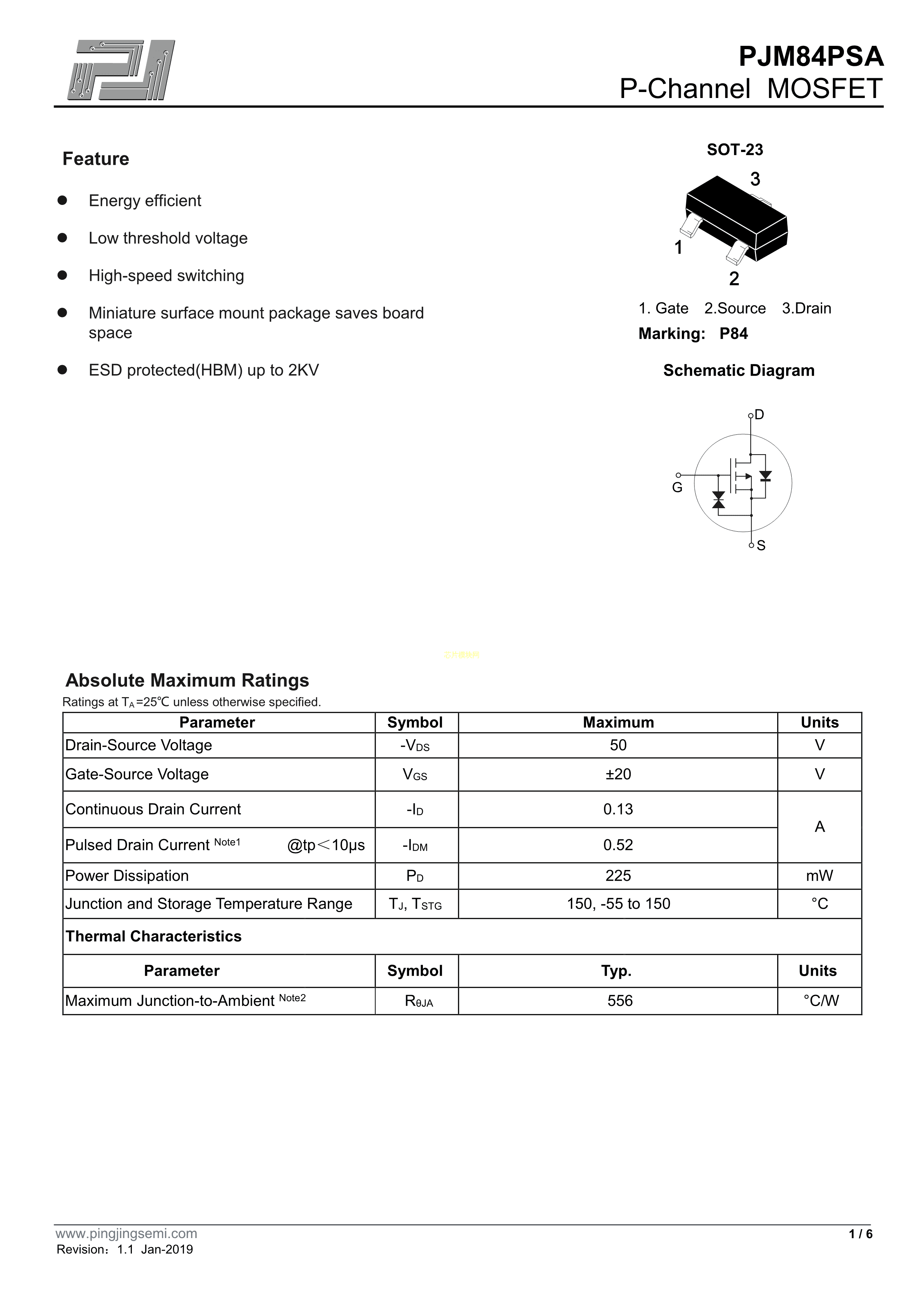 PJM84PSA数据手册SOT-23封装PJSEMI(平晶微)PDF规格书,中英文下载