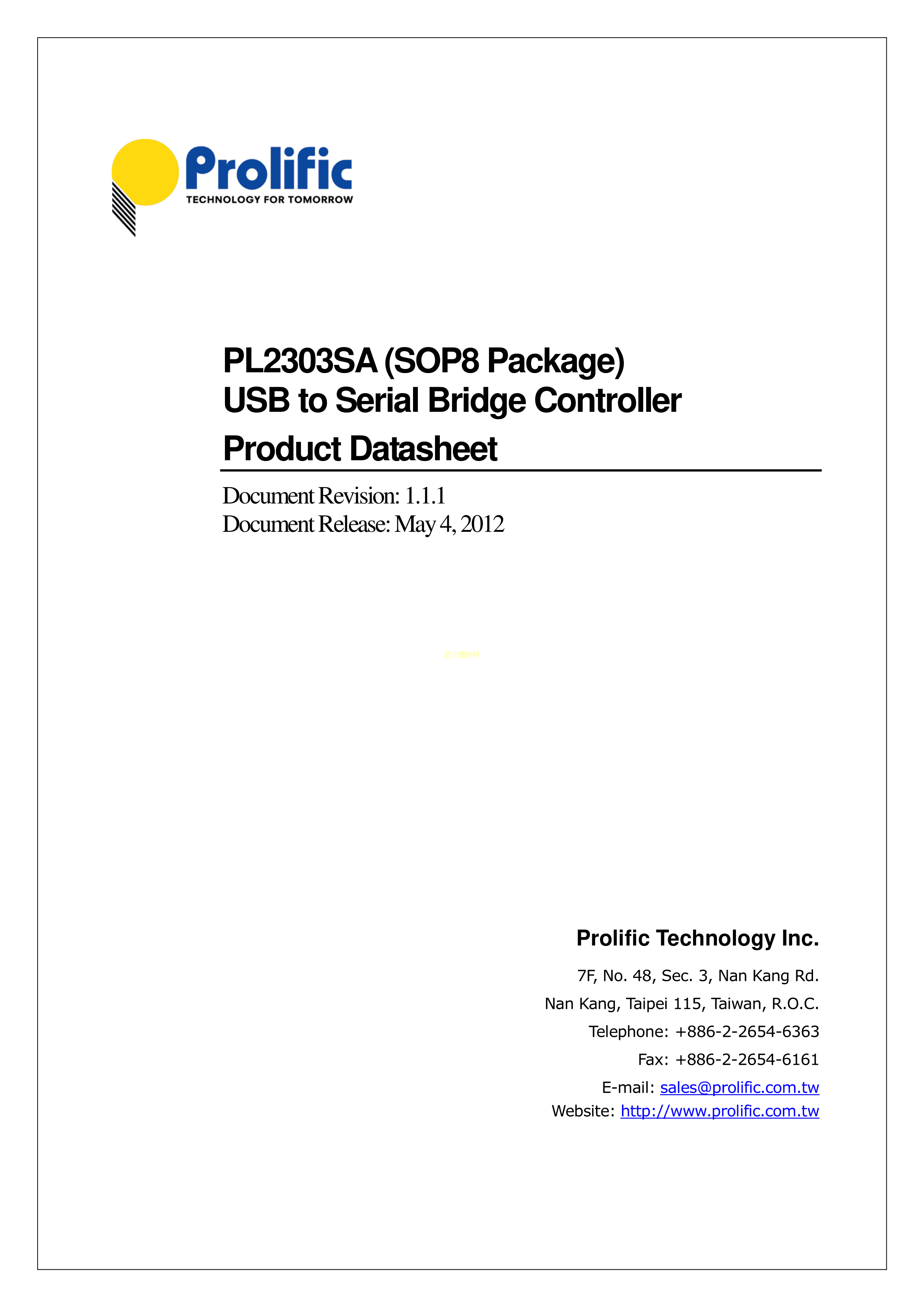 PL2303SALF数据手册SOP-8_150mil封装PROLIFIC(旺玖)PDF规格书,中英文下载