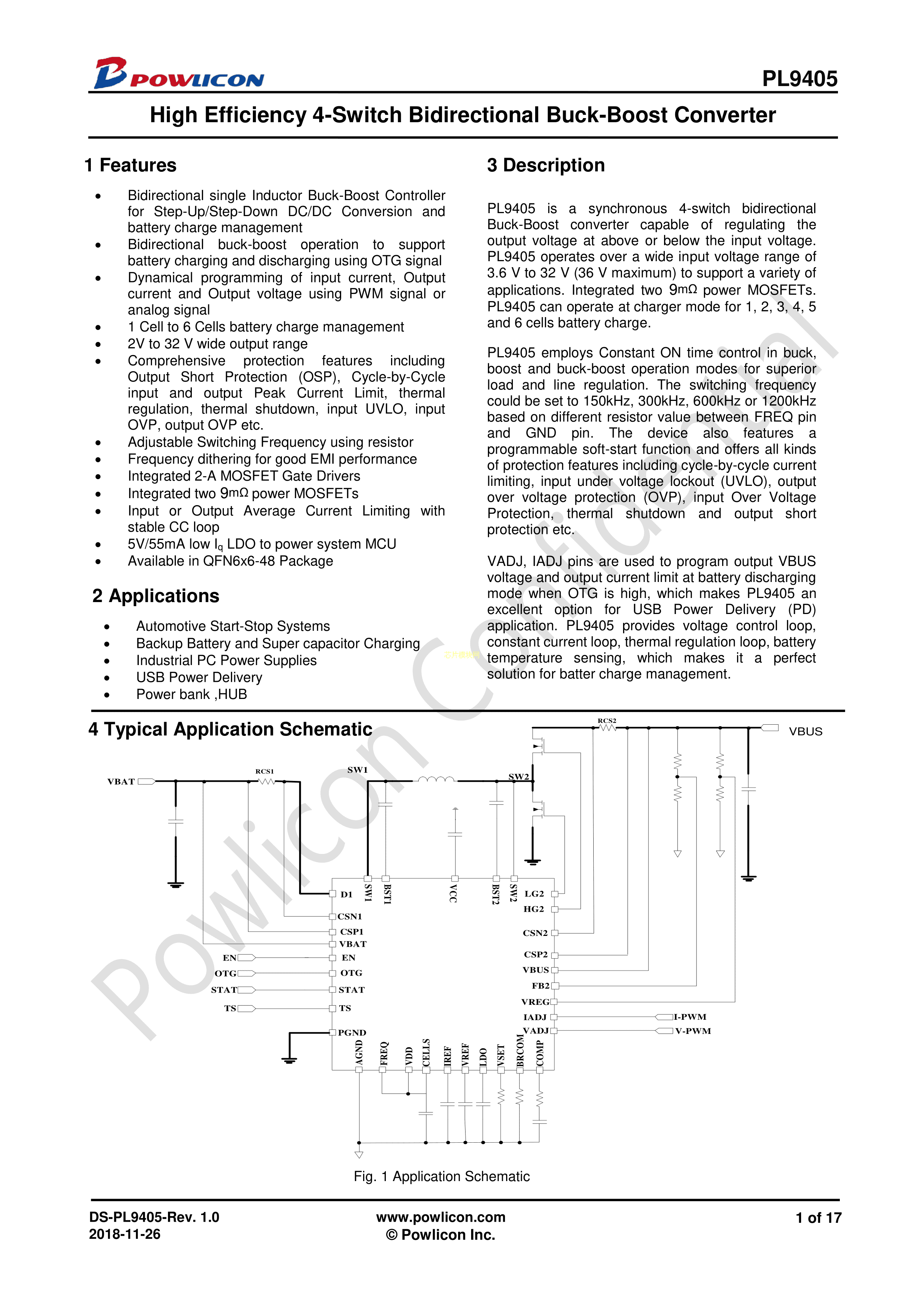 PL9405数据手册QFN-48(6x6)封装POWLICON(宝砾微)PDF规格书,中英文下载