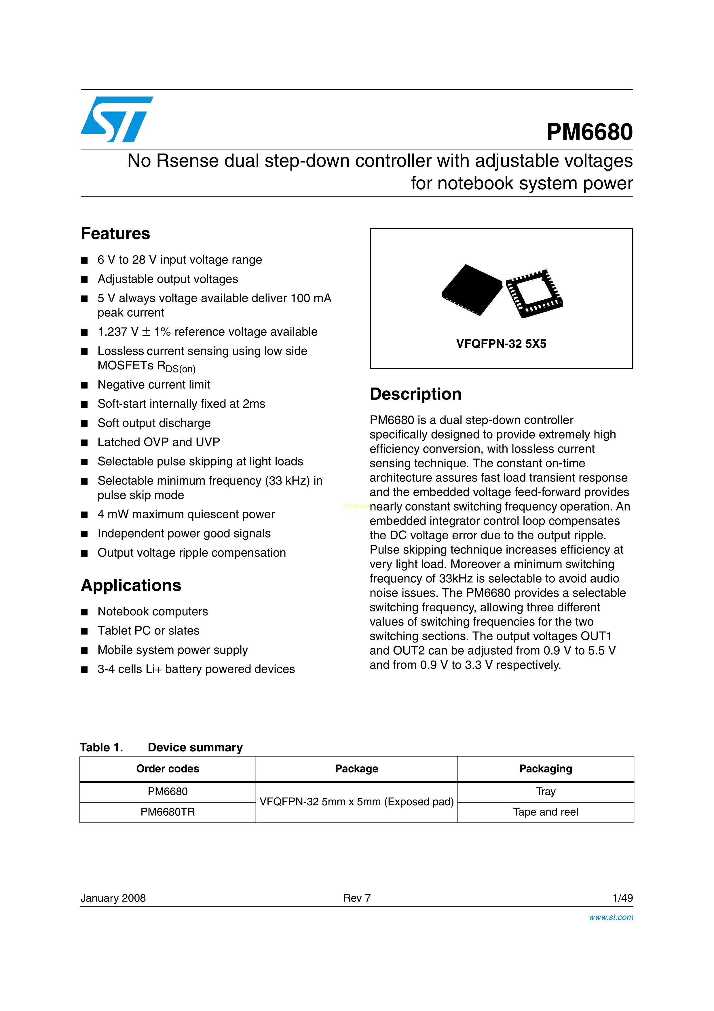 PM6680数据手册VFQFPN-32(5x5)封装ST(意法半导体)PDF规格书,中英文下载