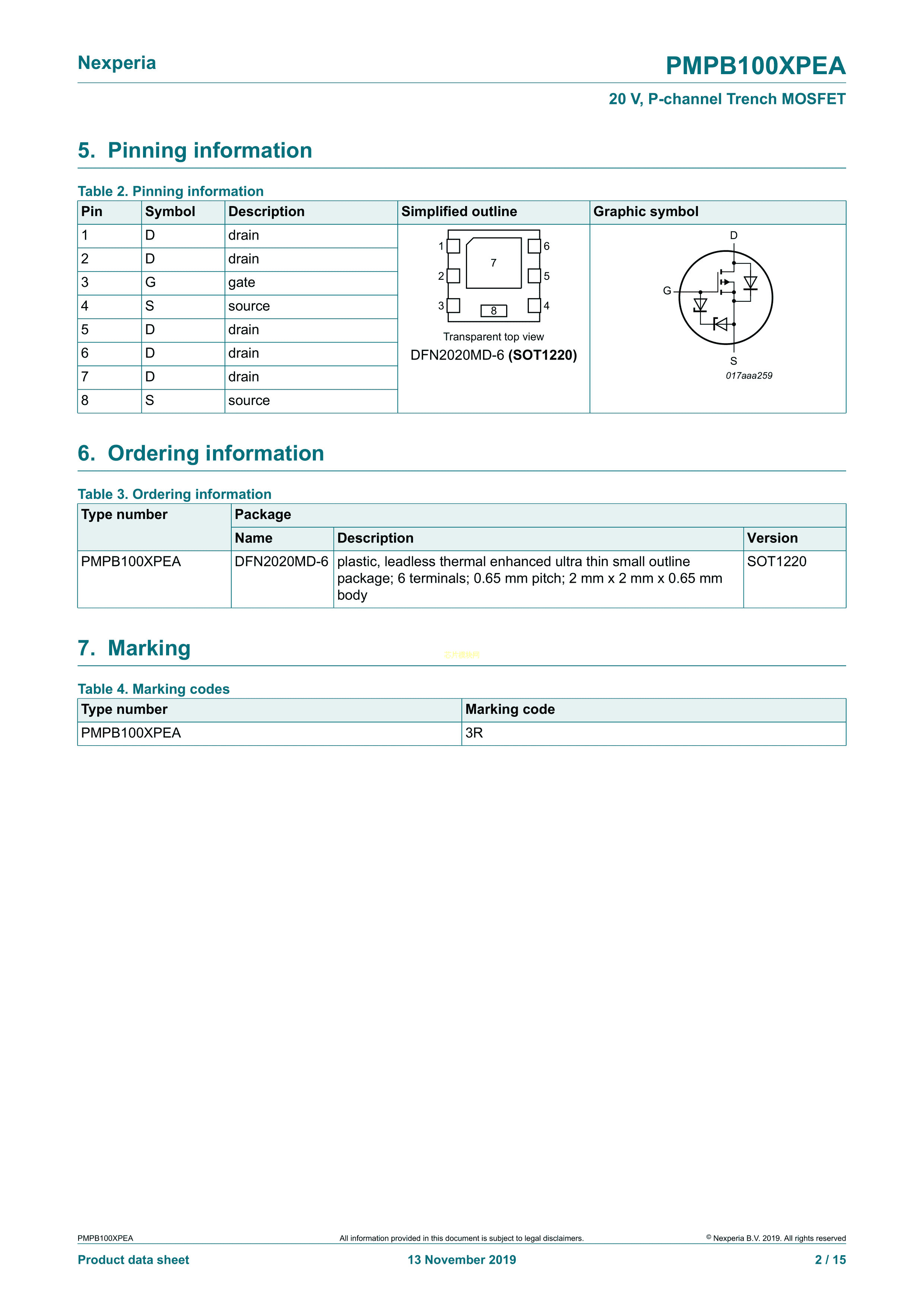 PMPB100XPEAX数据手册SOT-1220封装Nexperia(安世)PDF规格书,中英文下载