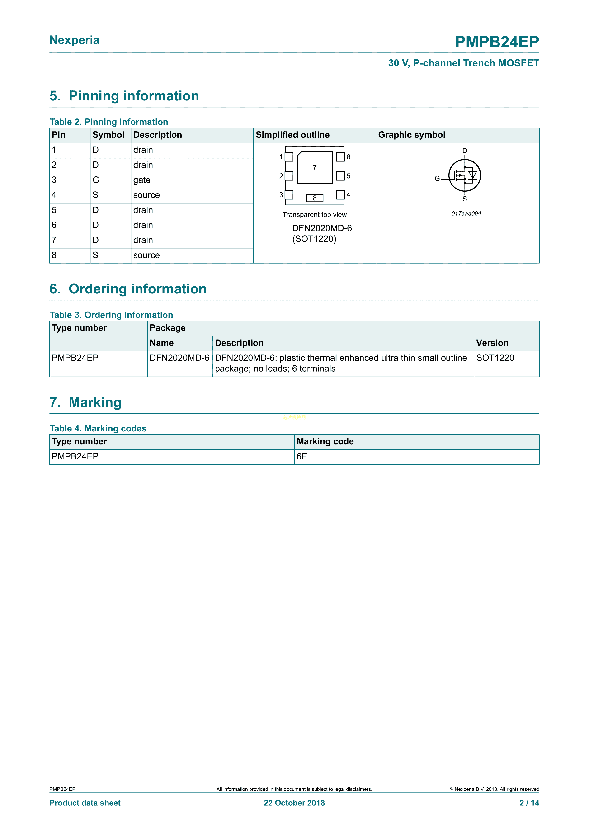 PMPB24EPX数据手册SOT-1220封装Nexperia(安世)PDF规格书,中英文下载
