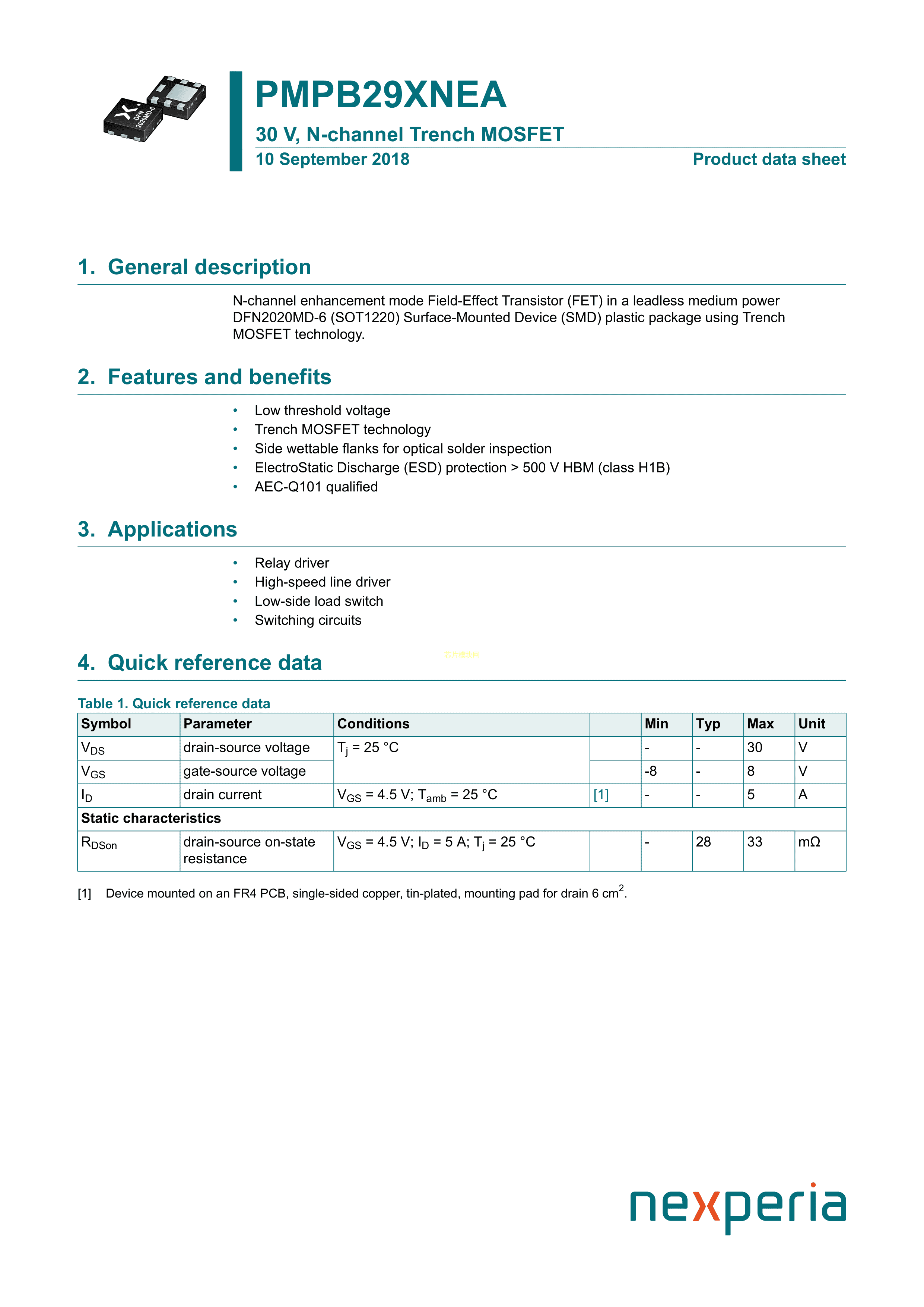 PMPB29XNEAX数据手册SOT-1220封装Nexperia(安世)PDF规格书,中英文下载