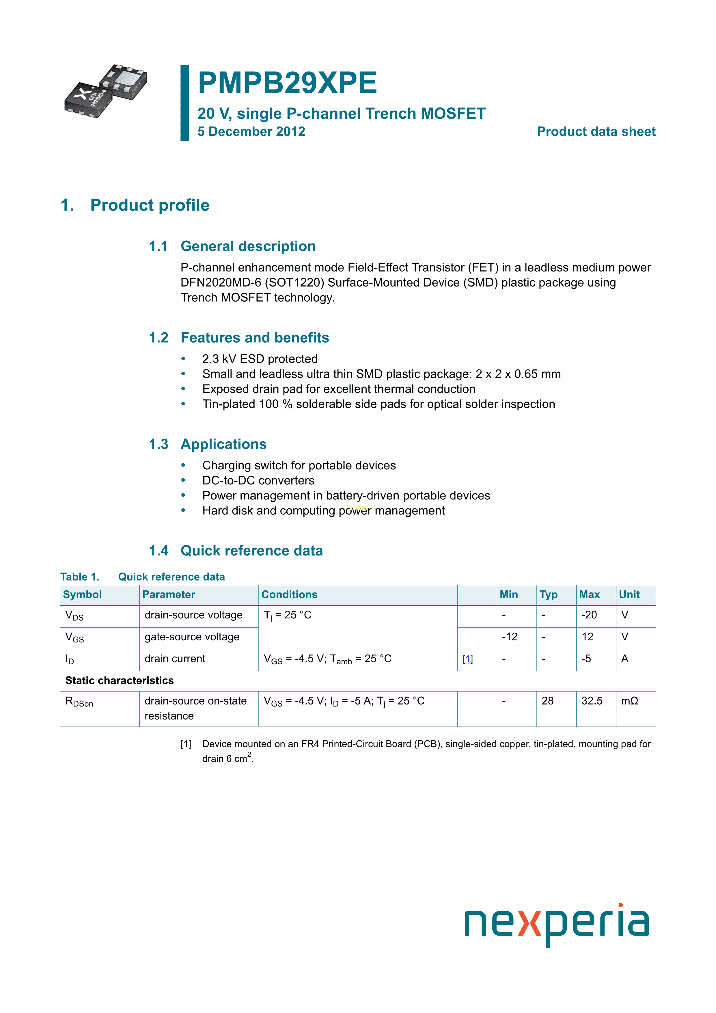 PMPB29XPE115数据手册SOT-1220封装Nexperia(安世)PDF规格书,中英文下载