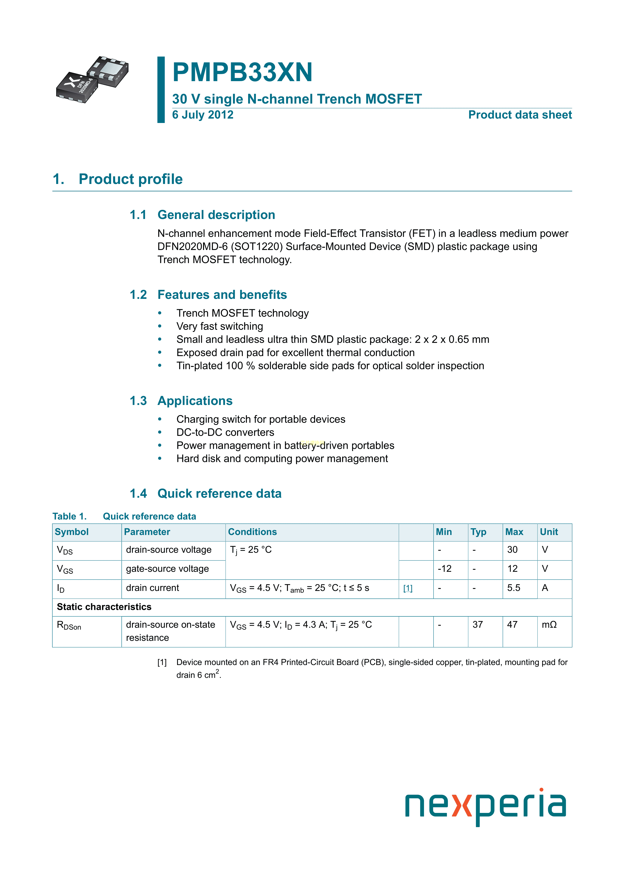 PMPB33XN115数据手册SOT-1220封装Nexperia(安世)PDF规格书,中英文下载