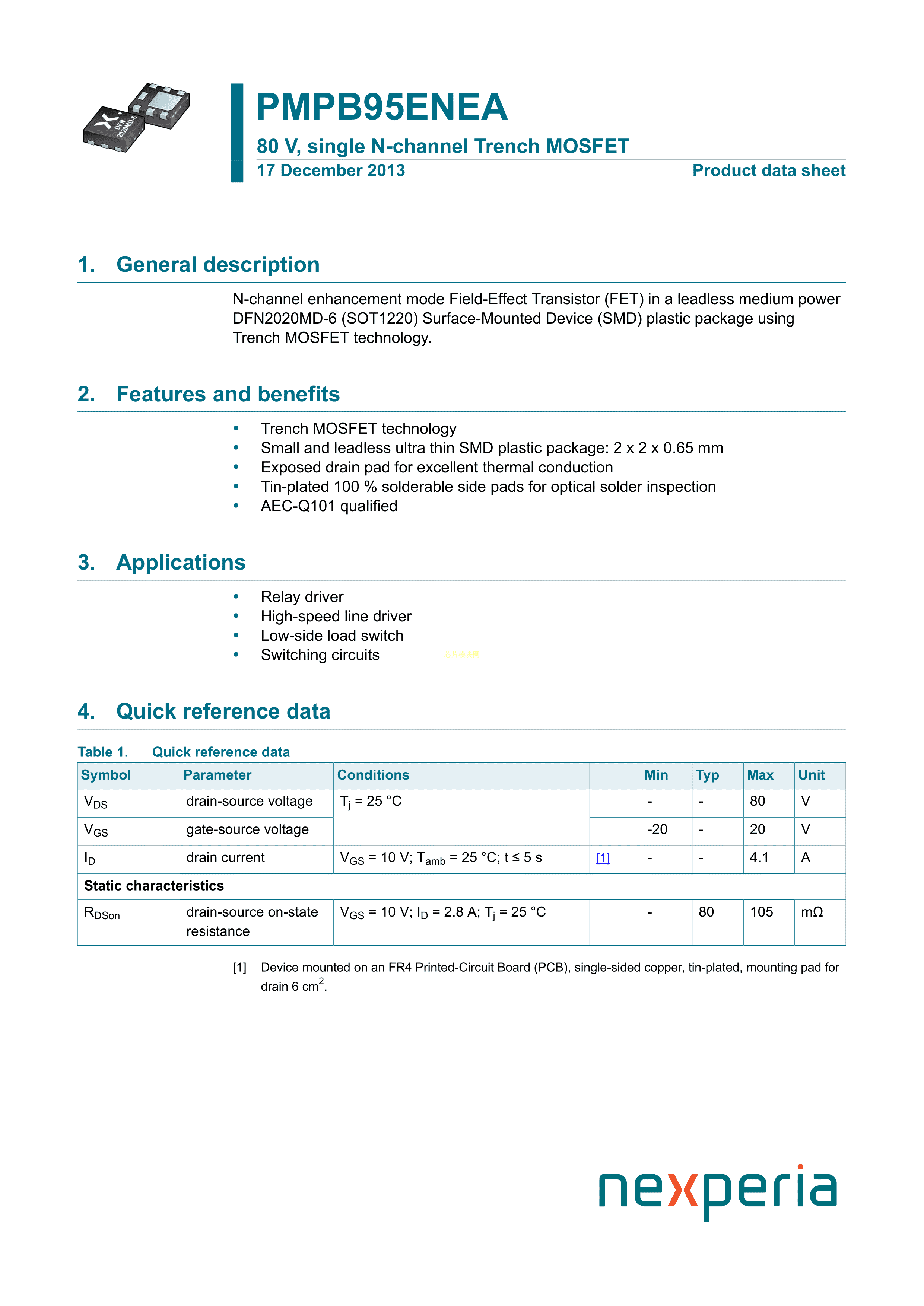 PMPB95ENEAX数据手册SOT-1220封装Nexperia(安世)PDF规格书,中英文下载